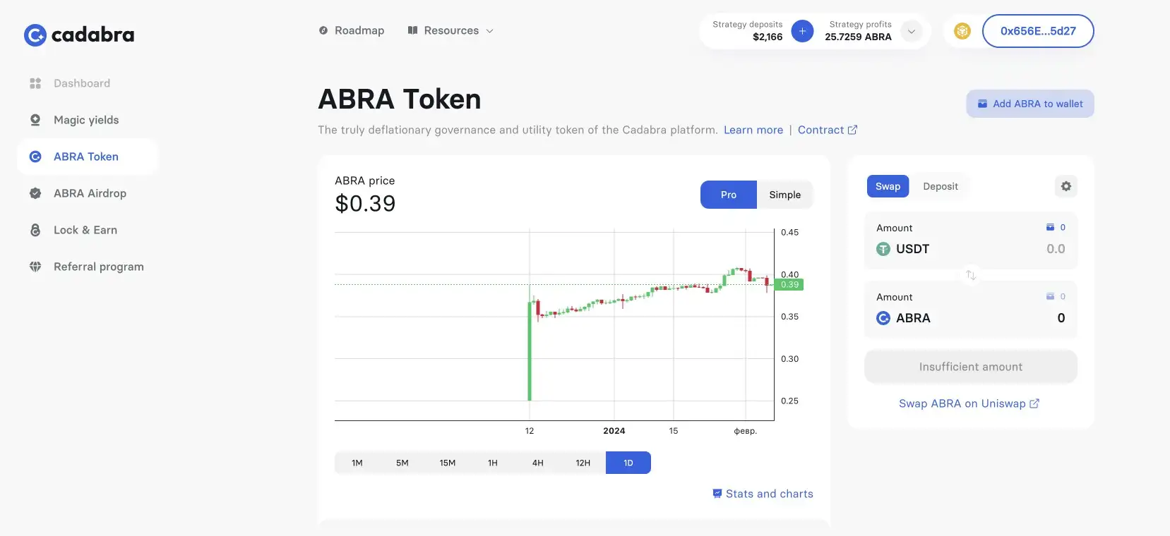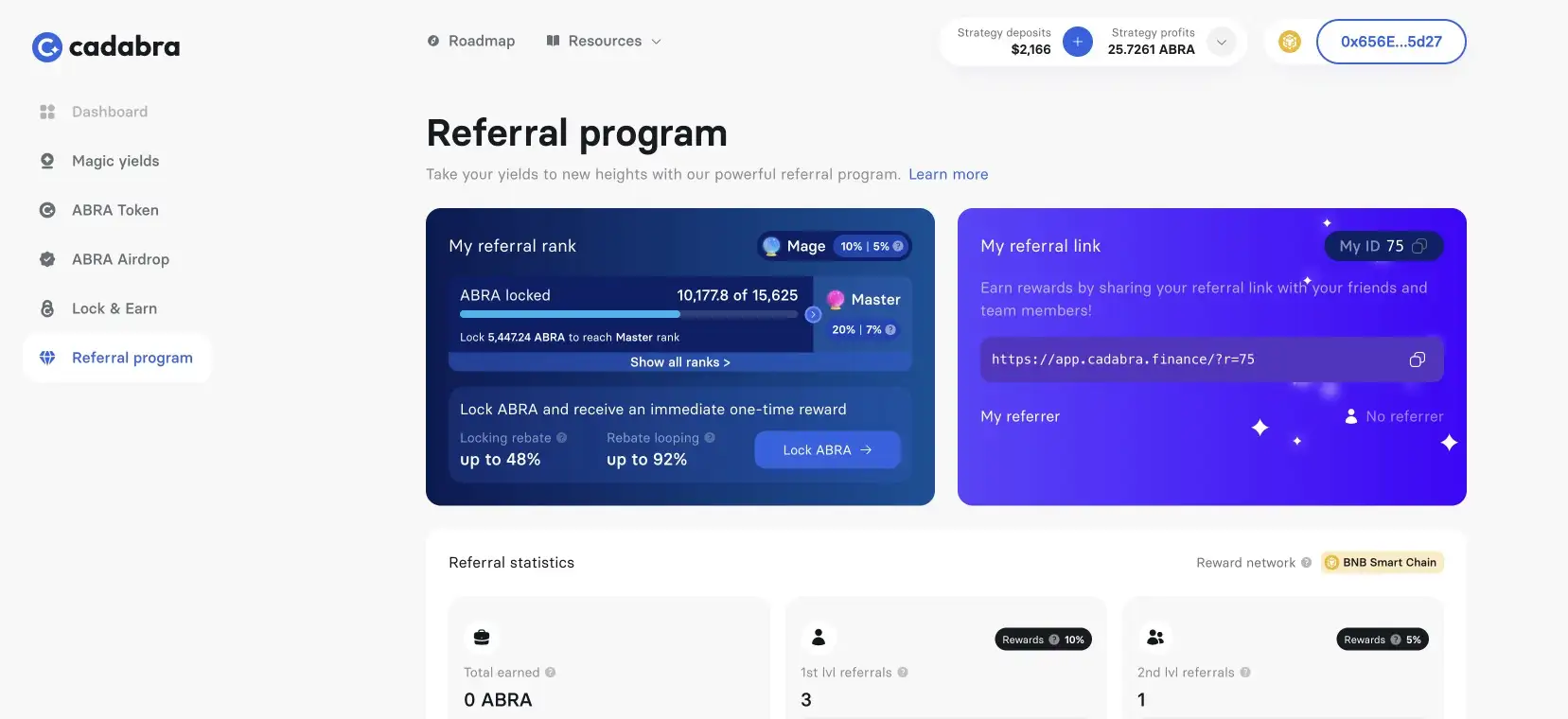 ABRA is integral to Cadabra's rewards programs. Users can earn additional ABRA tokens through referrals and active participation in the platform's yield strategies, promoting user growth and engagement.