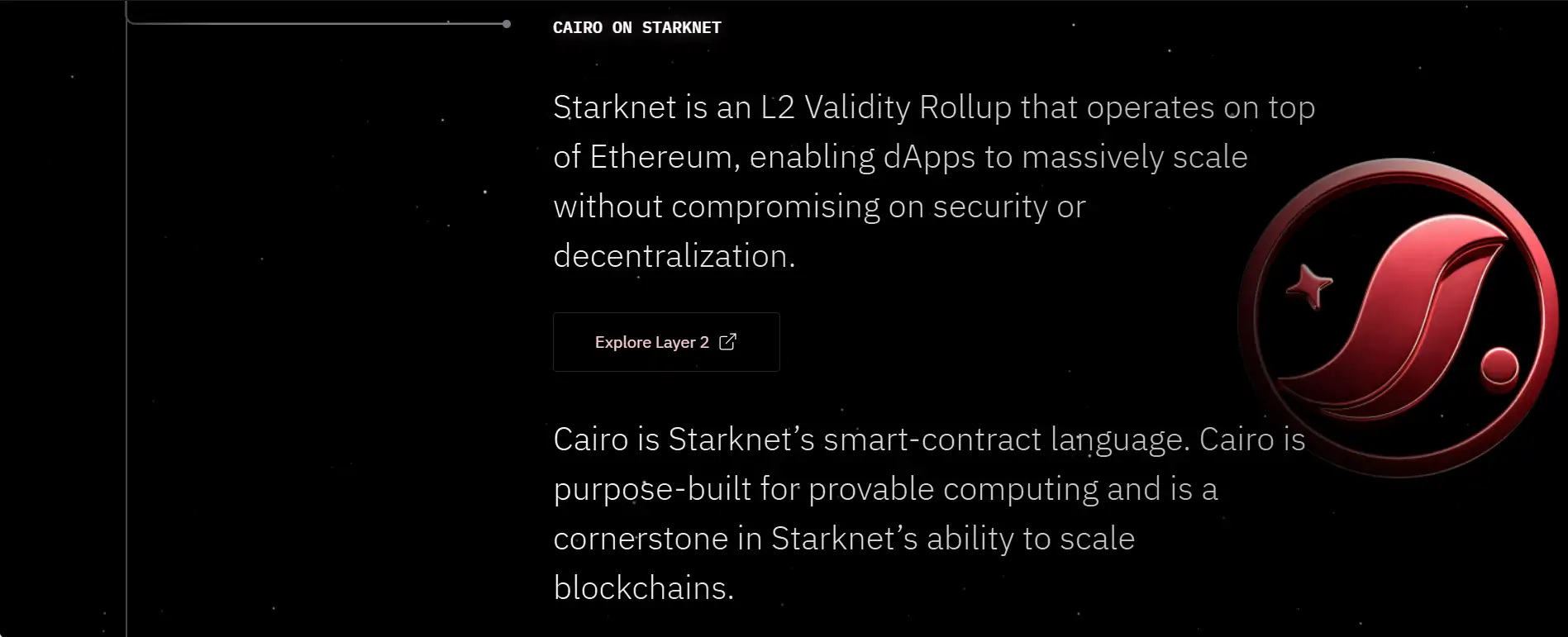 - Seamless Starknet Integration: Cairo is the native language of Starknet, a leading Layer 2 scaling solution for Ethereum. This allows developers to leverage Starknet's scalability and Ethereum’s base-layer security.