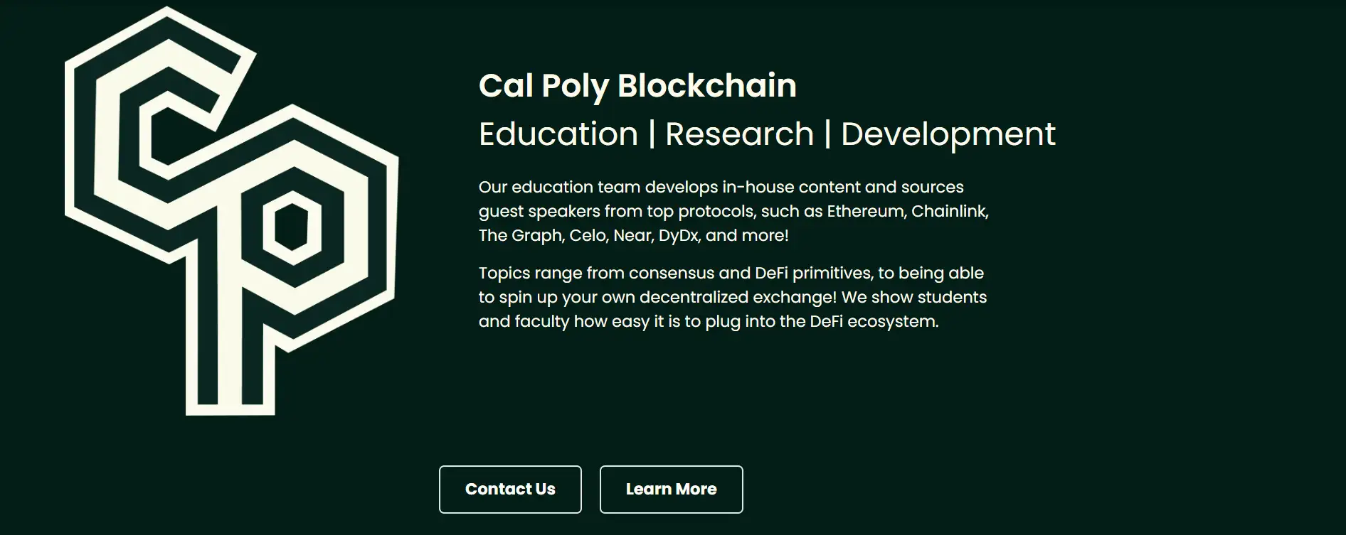 The club prioritizes accessibility and provides a welcoming path for students with no prior blockchain experience. Through guided workshops, curated learning paths, peer-led sessions, and beginner-friendly project groups, Cal Poly Blockchain helps new members grow into confident contributors to the Web3 ecosystem. Learn more on the official site.