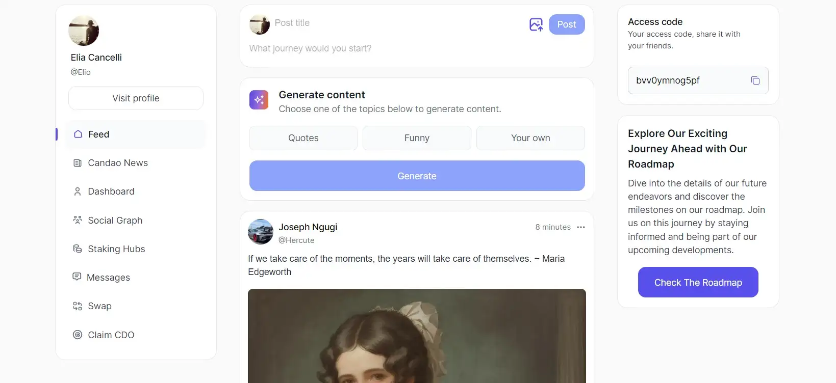 - Decentralized Social Networking: Candao offers a truly decentralized social network where users have full control over their data and are rewarded for their contributions.