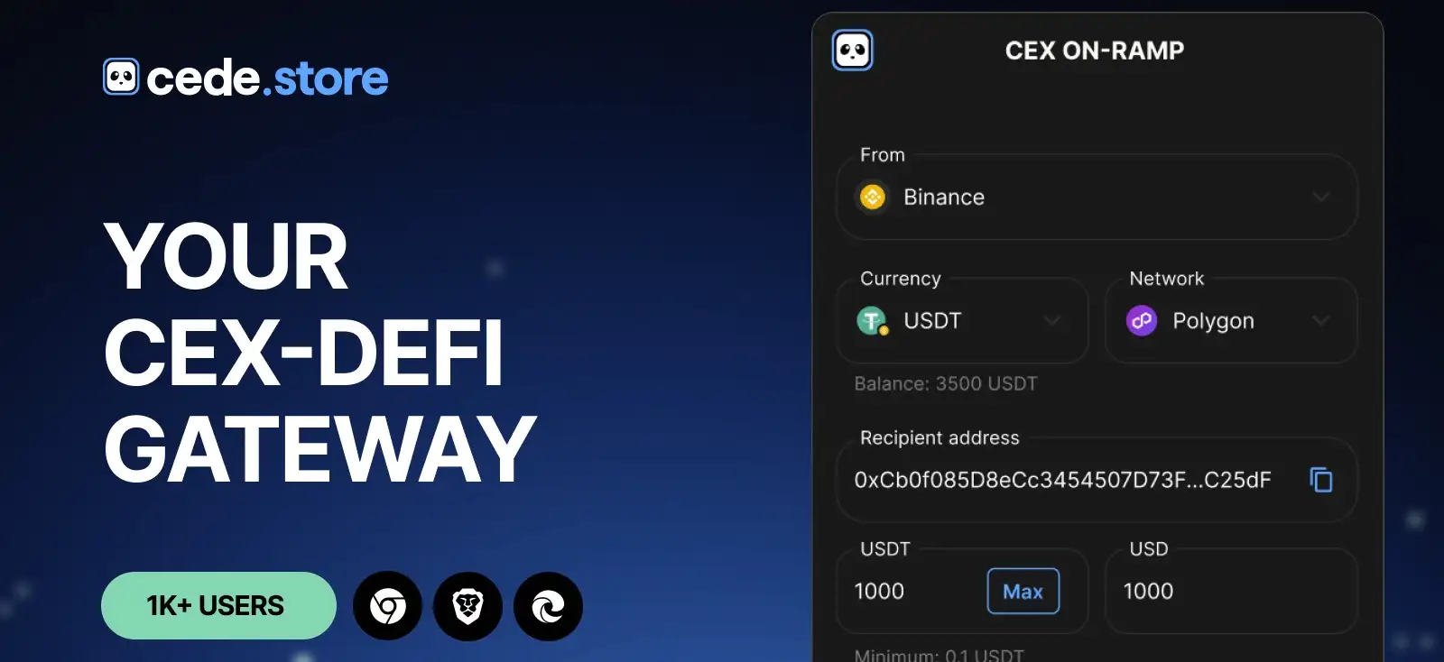 - Seamless User Experience: Cede.store offers a user experience that mirrors the simplicity of DeFi wallets. Users can sign transactions and interact with dApps with just one click, using their CEX assets without needing to transfer them to a DeFi wallet first.