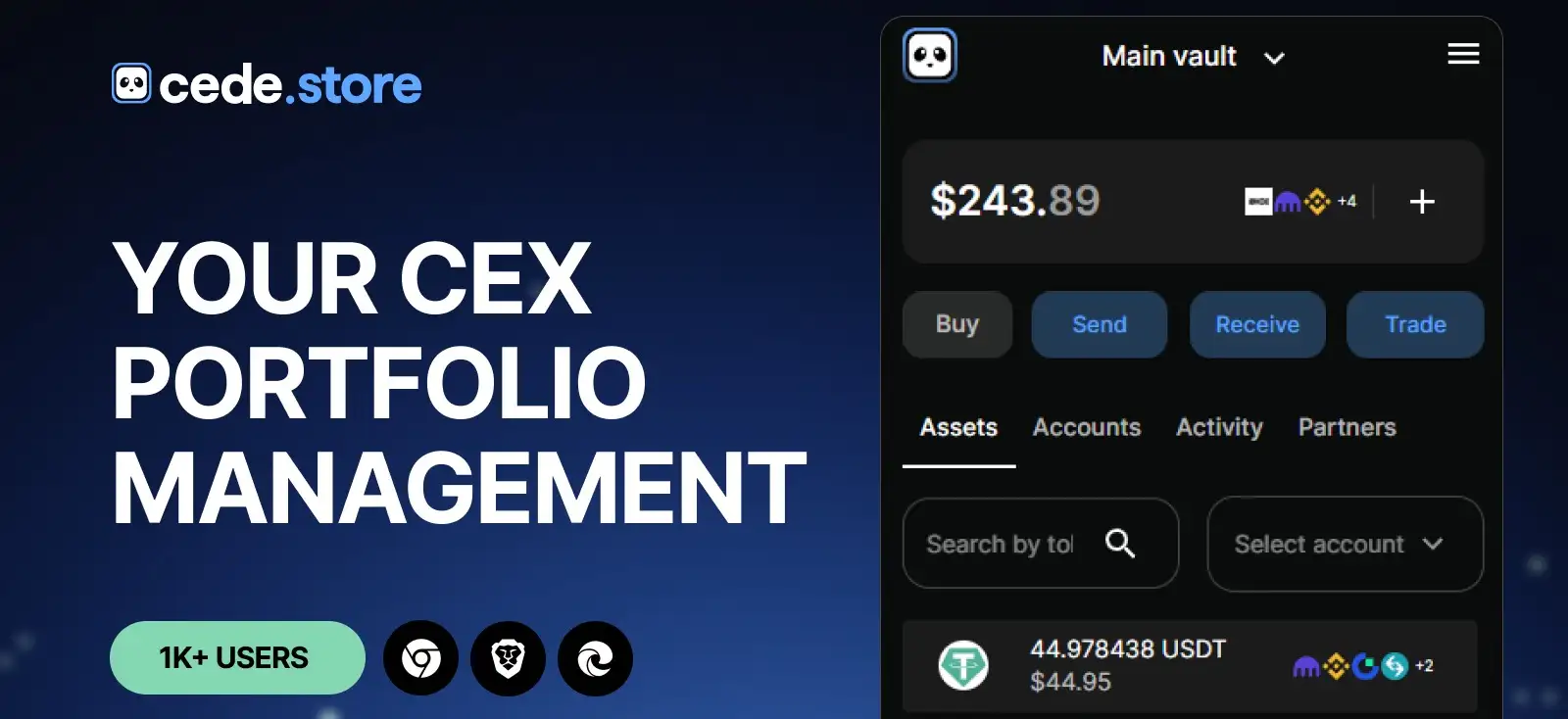 Cede.store is positioned as a groundbreaking solution in the crypto ecosystem, offering a unique combination of CeFi and DeFi functionalities. At its core, Cede.store is a non-custodial wallet that allows users to aggregate and manage their assets from over 10 different centralized exchanges (CEXs) and across 489 networks, all from a single, user-friendly interface. The platform is designed to mimic the ease of use found in DeFi wallets while incorporating the robust features necessary for handling CeFi assets.