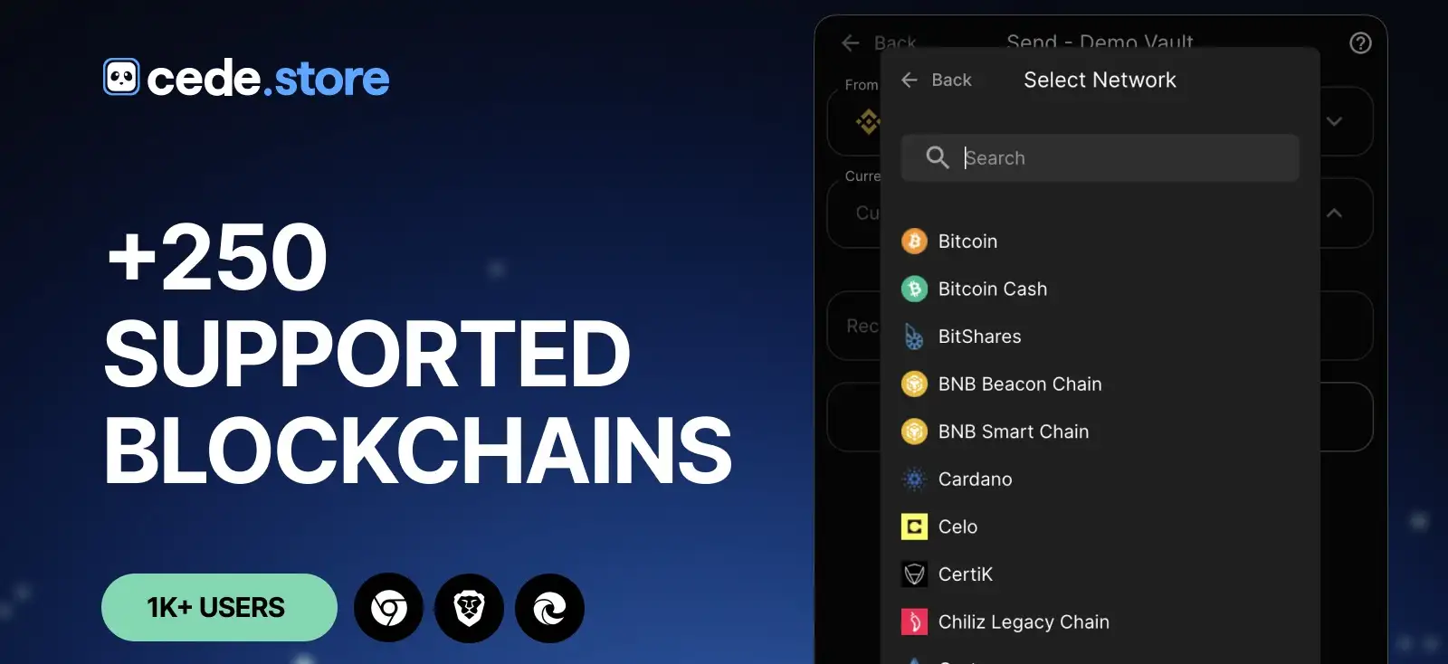 - Multi-Network Support: With compatibility for 489 networks and over 2700 assets, Cede.store provides comprehensive support for a wide range of cryptocurrencies, ensuring users can manage all their assets in one place.