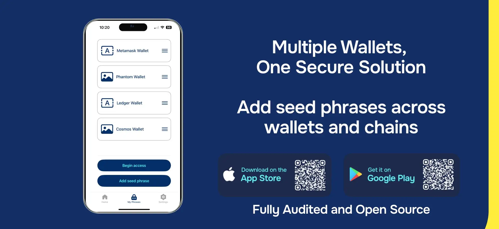 - Multi-Seed Management: Users can securely manage multiple seed phrases within a single platform, providing a convenient and organized way to handle their digital assets.