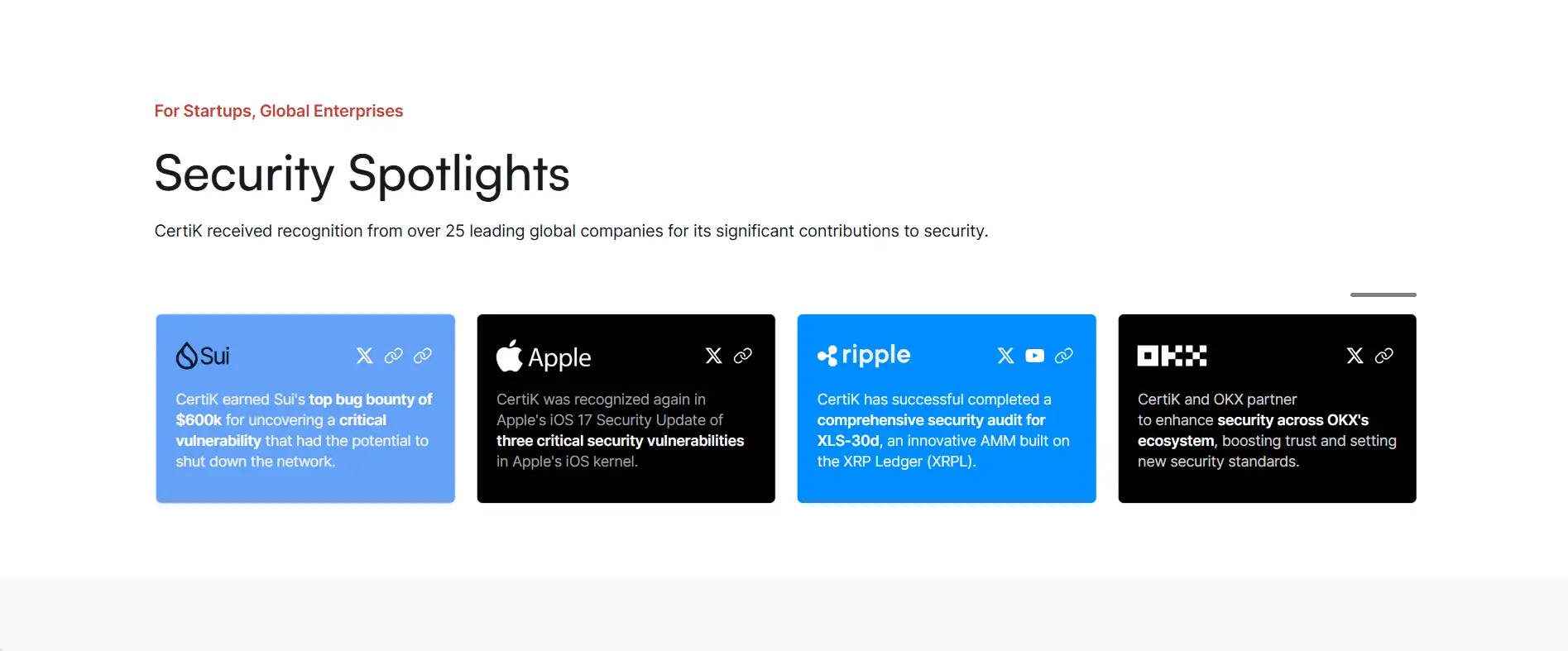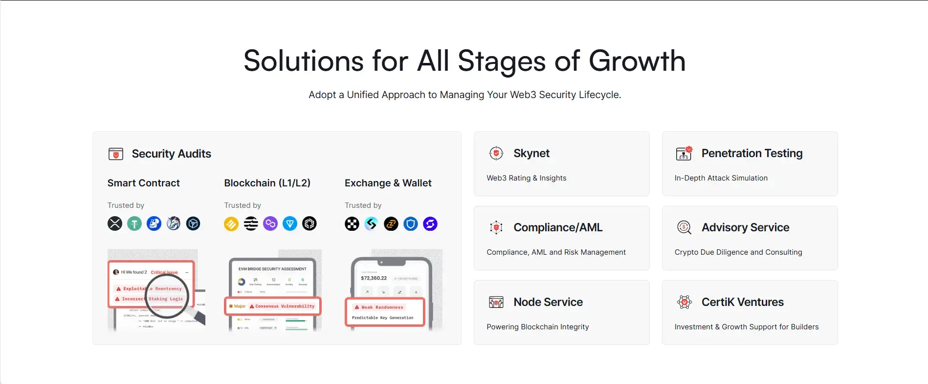 - Security for All Layers: From L1s and rollups to tokens, protocols, and wallets, CertiK supports projects across the Web3 stack.
