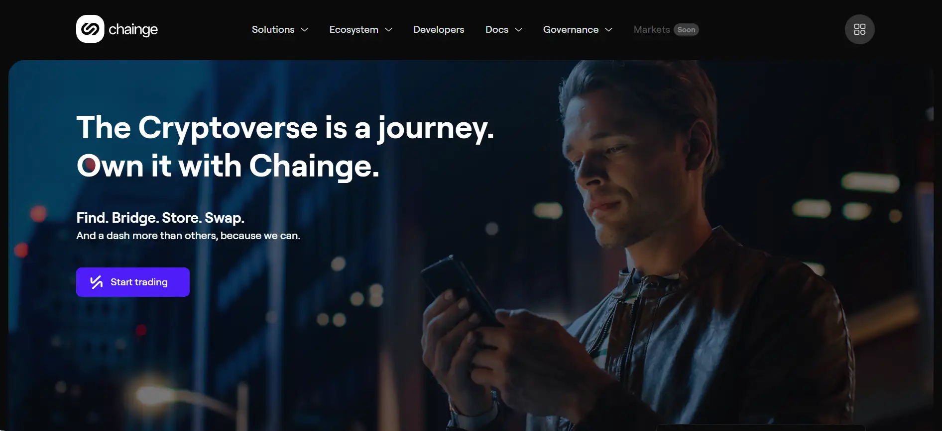 Chainge is a pioneering DeFi platform that brings the entire cryptoverse under one roof. From cross-chain swaps and bridge infrastructure to smart wallets and natural language interfaces, Chainge empowers users to trade, store, swap, and earn crypto effortlessly across 55+ blockchain networks.