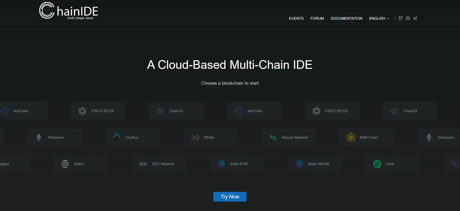 The development of ChainIDE began with the goal of making blockchain accessible to all, from novice developers taking their first steps in smart contract development to seasoned professionals looking to streamline their workflow. The platform supports a wide range of blockchains, such as Ethereum, Binance Smart Chain, Flow, Polygon, and more. This broad support is one of ChainIDE’s key strengths, allowing developers to focus on writing code rather than on the technicalities of different blockchain networks.