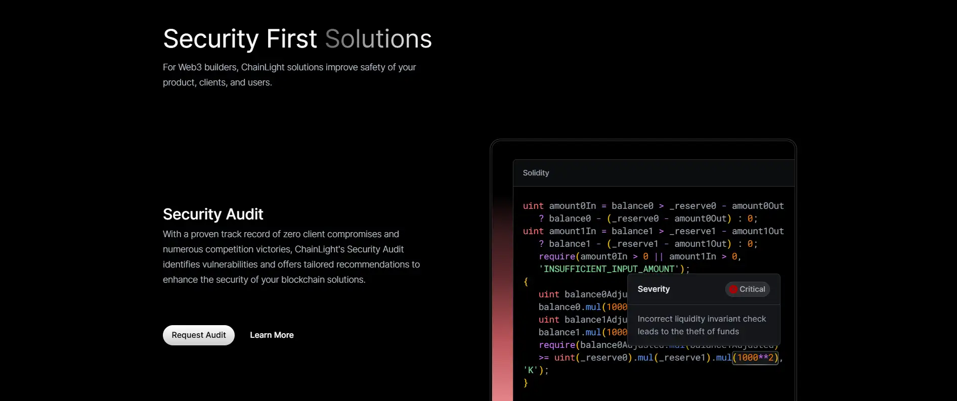 - Zero Compromise Record: With a 100% clean slate of no client compromises, ChainLight stands as a beacon of reliability in Web3 security.