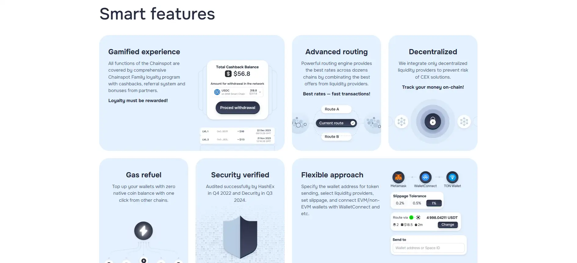 Chainspot provides a wide array of features and benefits that make it a standout platform in the omnichain DeFi space: