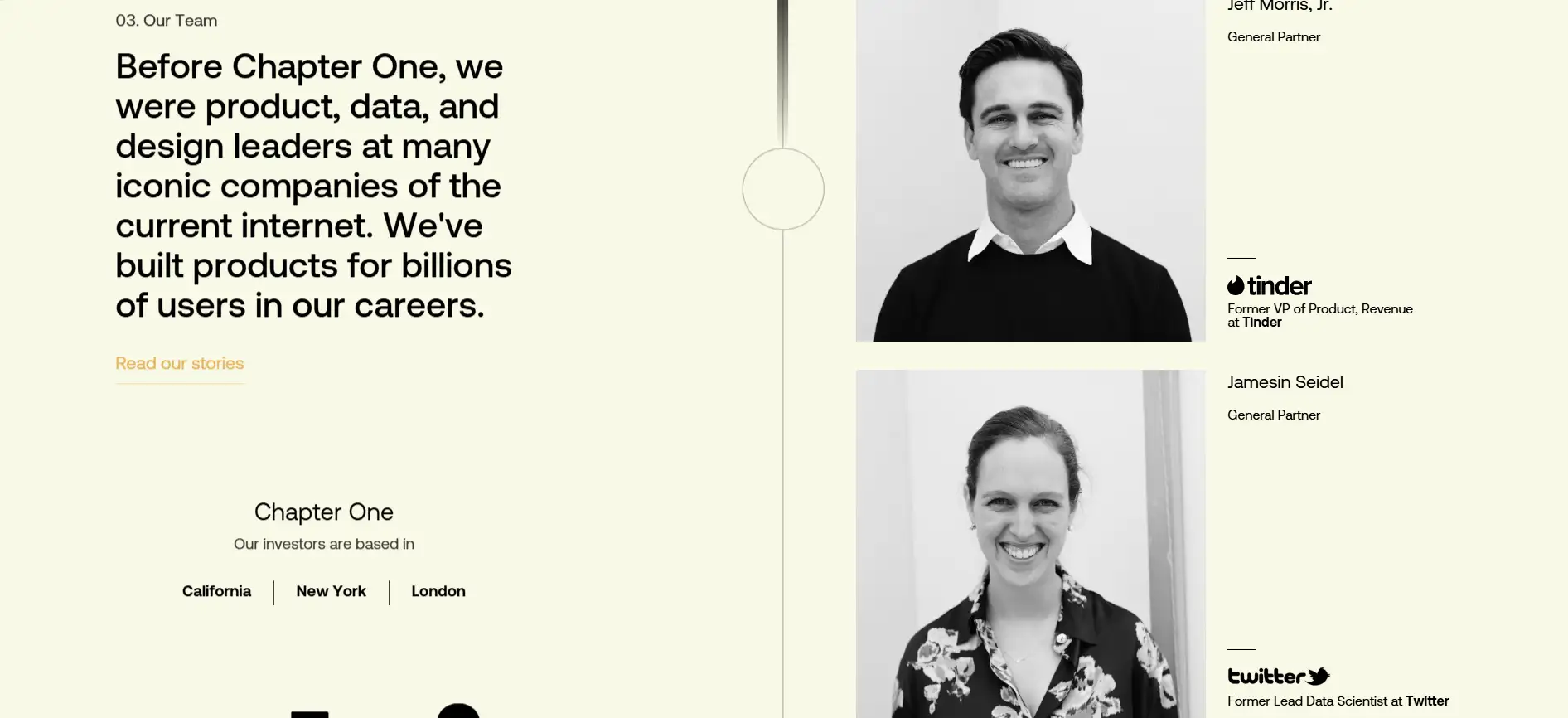 Chapter One was founded with the belief that the best venture partners are those who have built and shipped great products themselves. The team is composed of former leaders from industry giants like Tinder, Twitter, and IBM, each of whom has contributed to products used by billions. This deep operator background gives Chapter One a unique advantage: the ability to support founders with practical insight, grounded strategies, and meaningful connections.