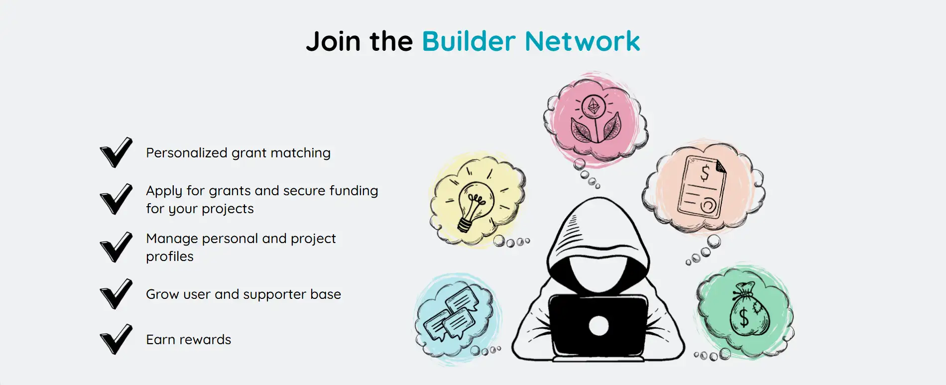 - Personalized Builder Experience: Builders can apply for grants, manage project profiles, track milestones, and receive updates—all within a unified, transparent dashboard.