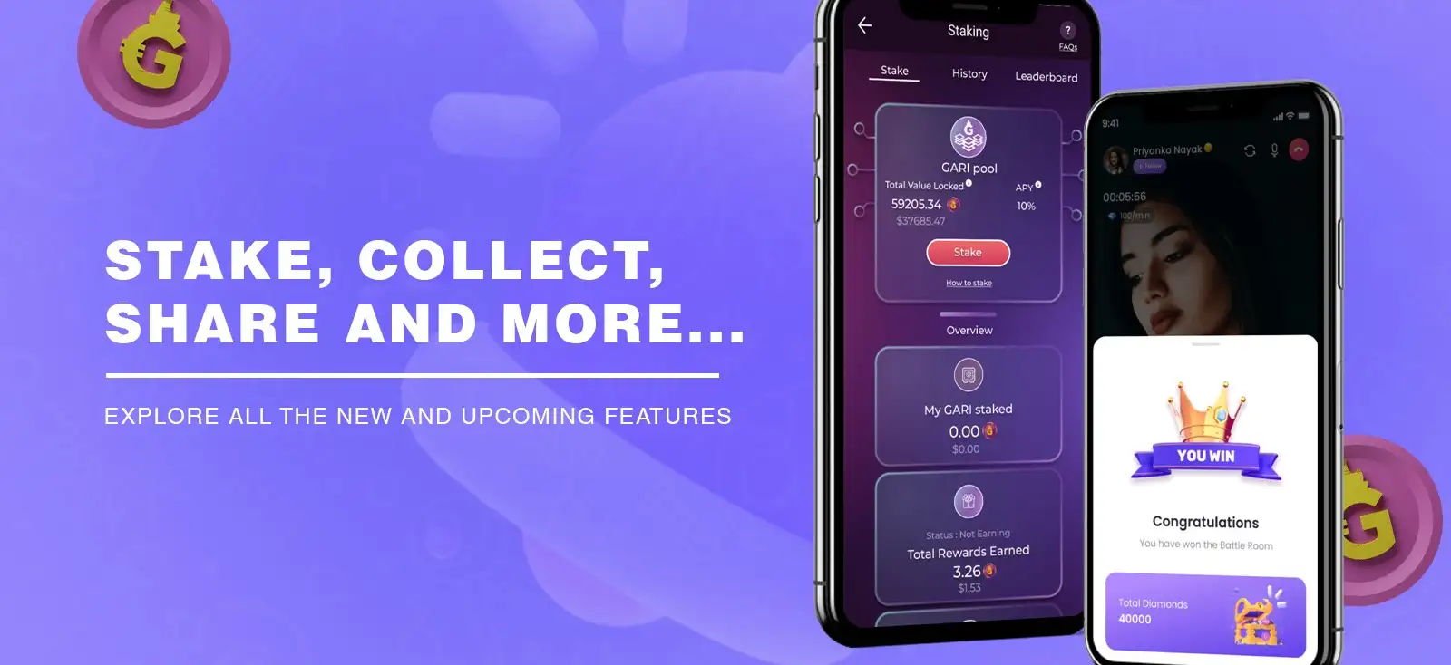 - $GARI Mining: The GARI Mining program is an extensive “Engage & Earn” initiative that incentivizes Chingari users to participate in the creator economy.