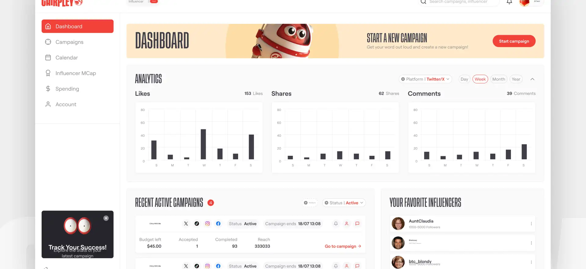 - Engage and Monitor: Once your campaign is live, monitor its performance through the dashboard. Use the data and analytics provided by Chirpley to adjust and optimize your campaign for better results.