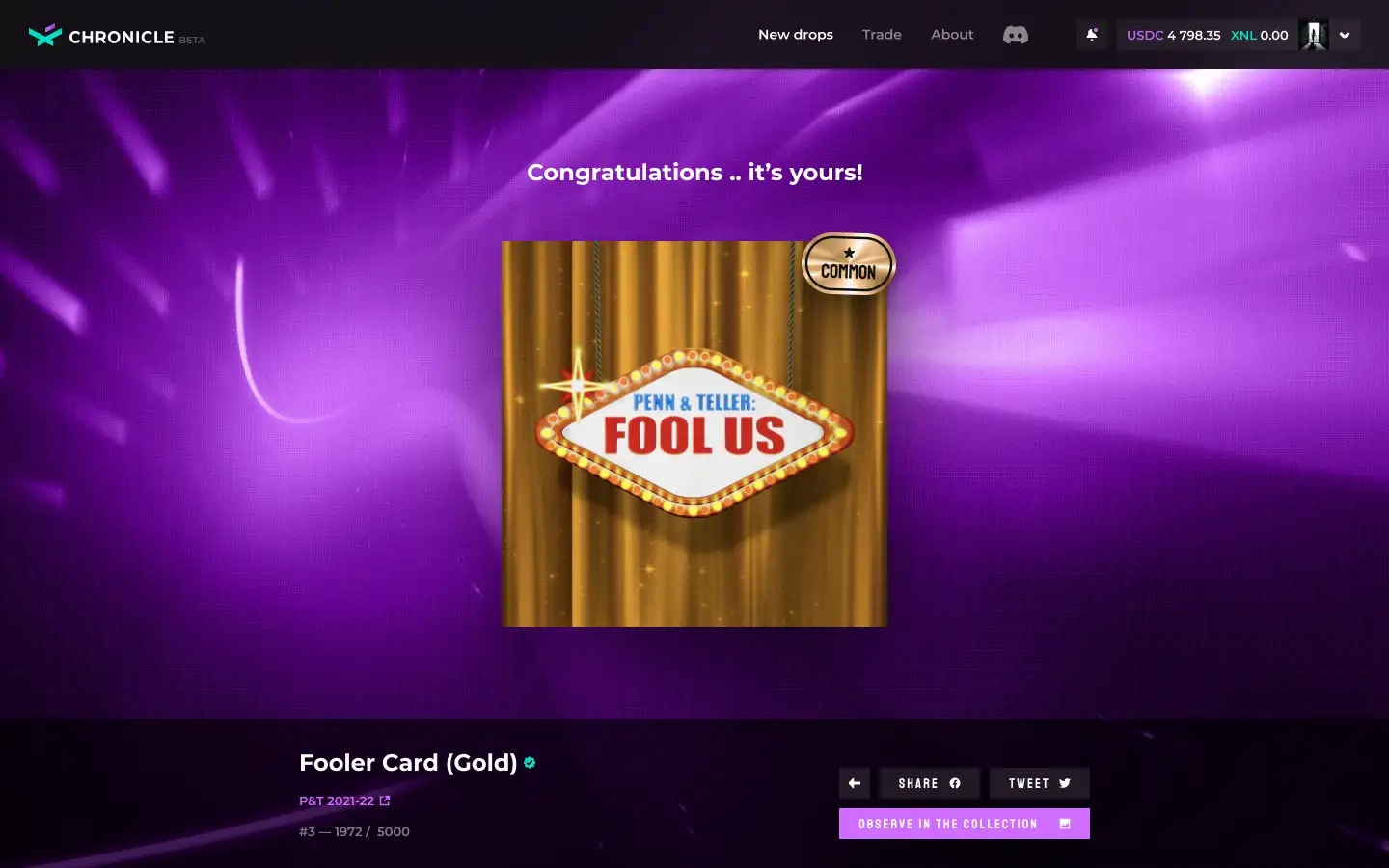 - User-Friendly Interface: Chronicle's platform is designed for ease of use, allowing users to sign in with their email and navigate the ecosystem effortlessly. The intuitive interface makes it easy for both beginners and experienced users to engage with digital collectibles and NFTs.