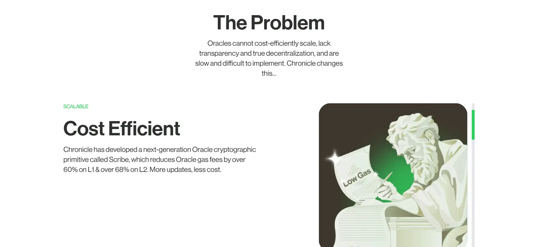 Scribe is Chronicle’s proprietary cryptographic primitive that drastically lowers the gas cost of Oracle data updates. Compared to legacy models, Scribe achieves a 60% gas reduction on L1 and 68% on L2, while maintaining full decentralization. This allows for frequent updates without prohibitive costs, giving developers access to real-time, low-cost, high-integrity data feeds. Explore Scribe’s impact at chroniclelabs.org.