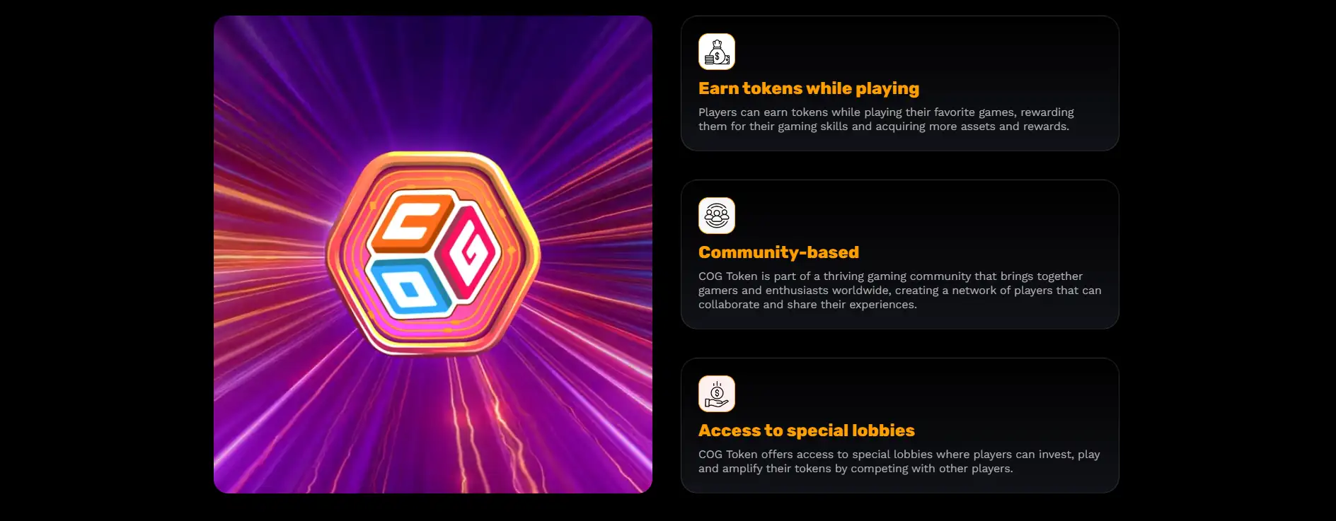 - Play-to-Earn Mechanics: The ecosystem rewards players with COG tokens for gameplay, making gaming financially beneficial.