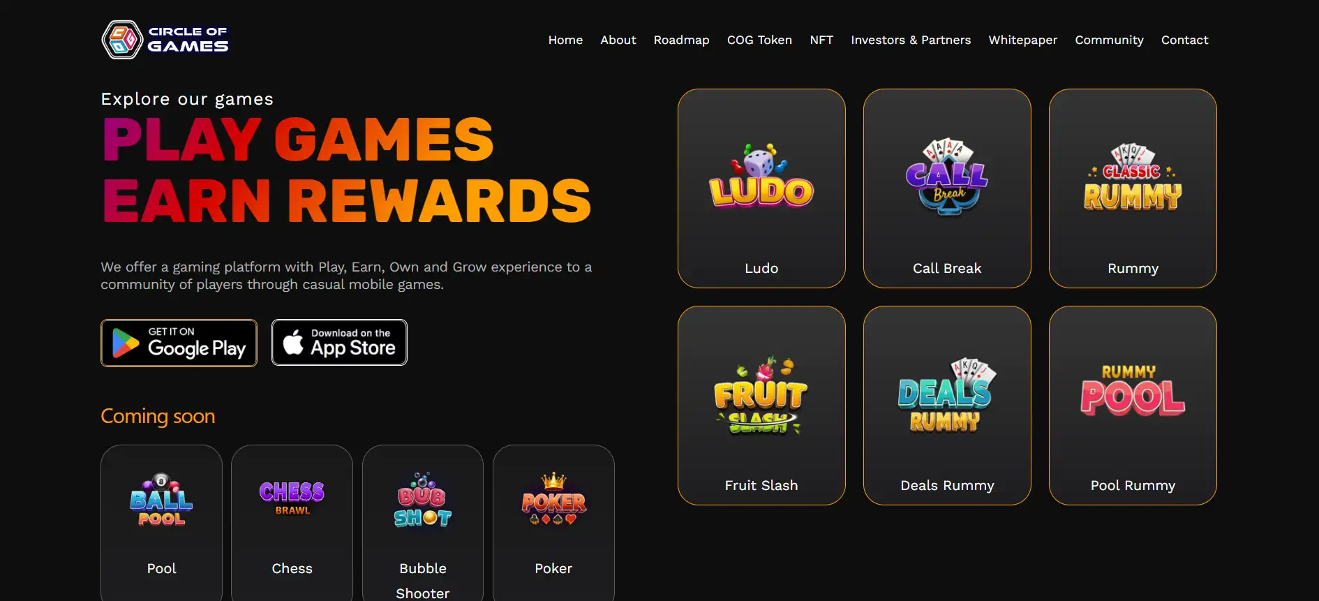 Circle of Games (COG) is a next-generation Web3 multi-gaming platform designed to empower players by combining skill-based gaming with real economic incentives. It offers a casual, engaging, and scalable ecosystem where users can Play, Earn, Own, and Grow through various single and multiplayer games. Built by a team of veterans from Zynga, MPL, Junglee, and other leading gaming companies, Circle of Games aims to onboard the next billion users to blockchain via mobile gaming.