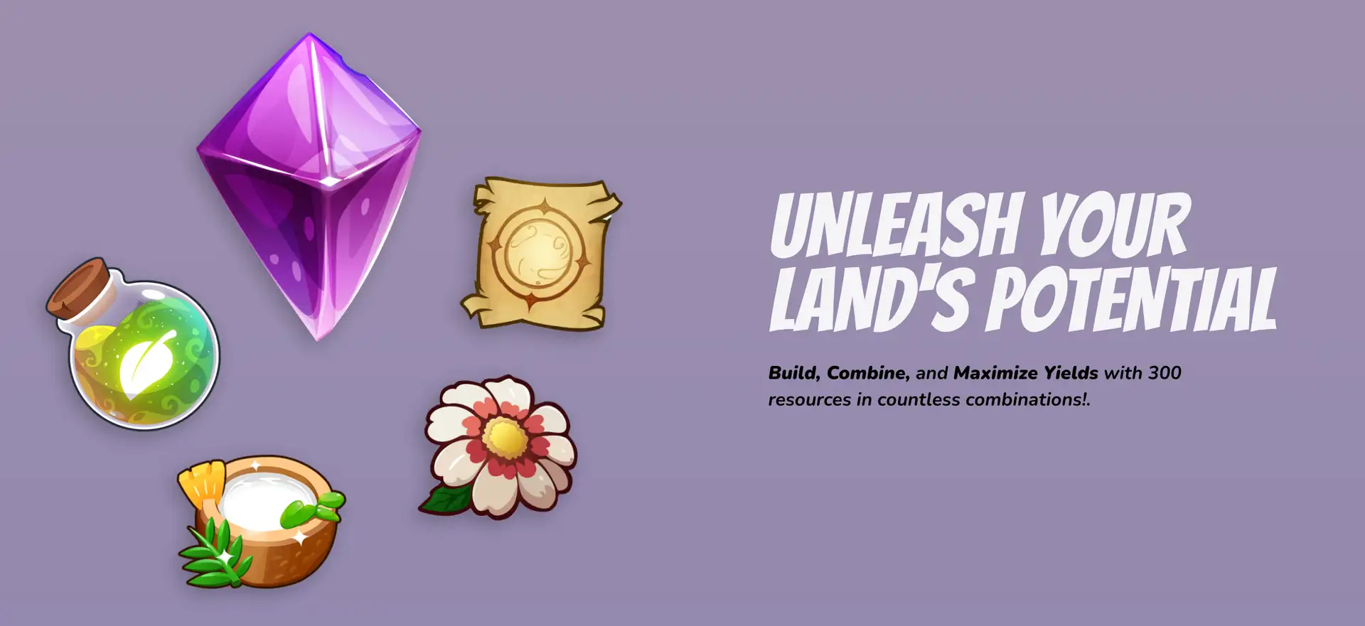 - Players acquire land plots which they can upgrade to increase resource production.