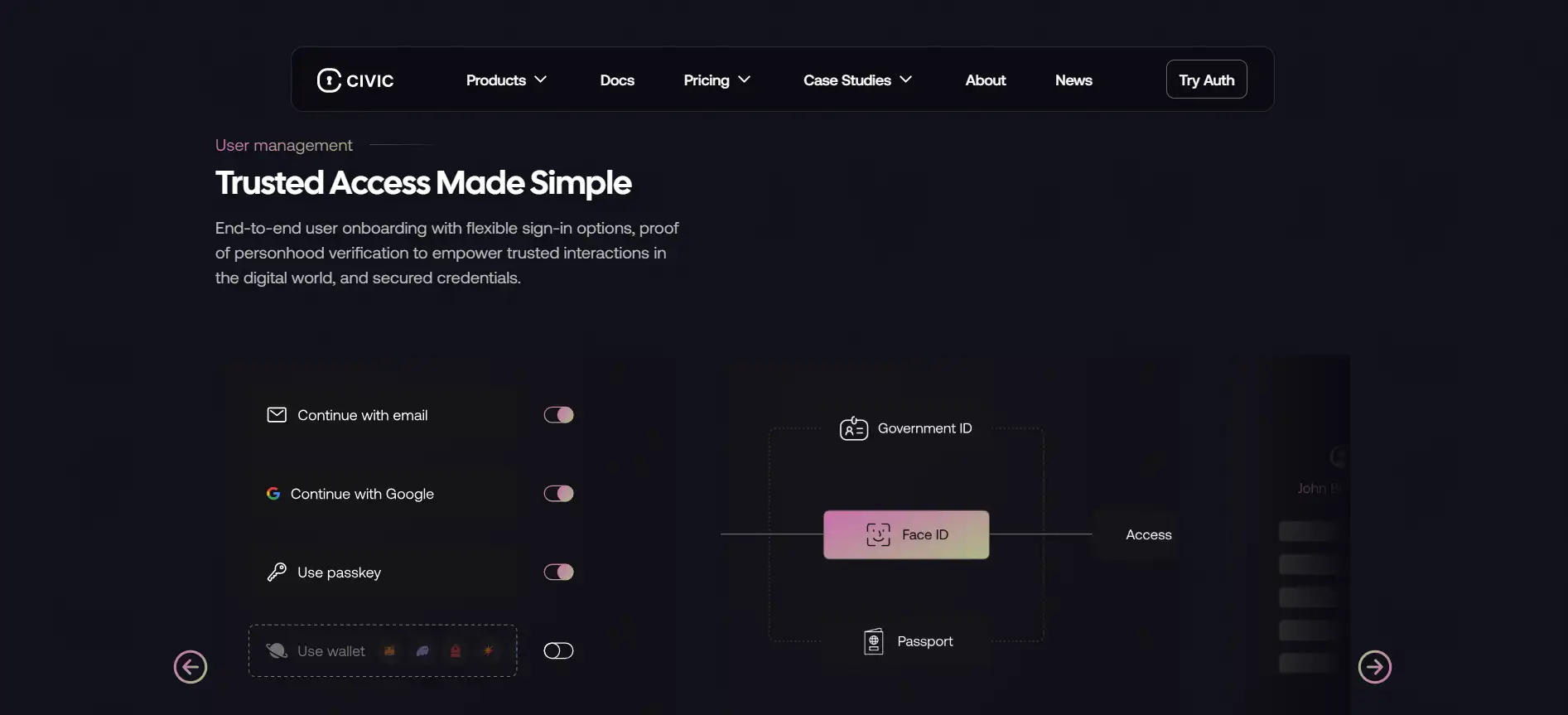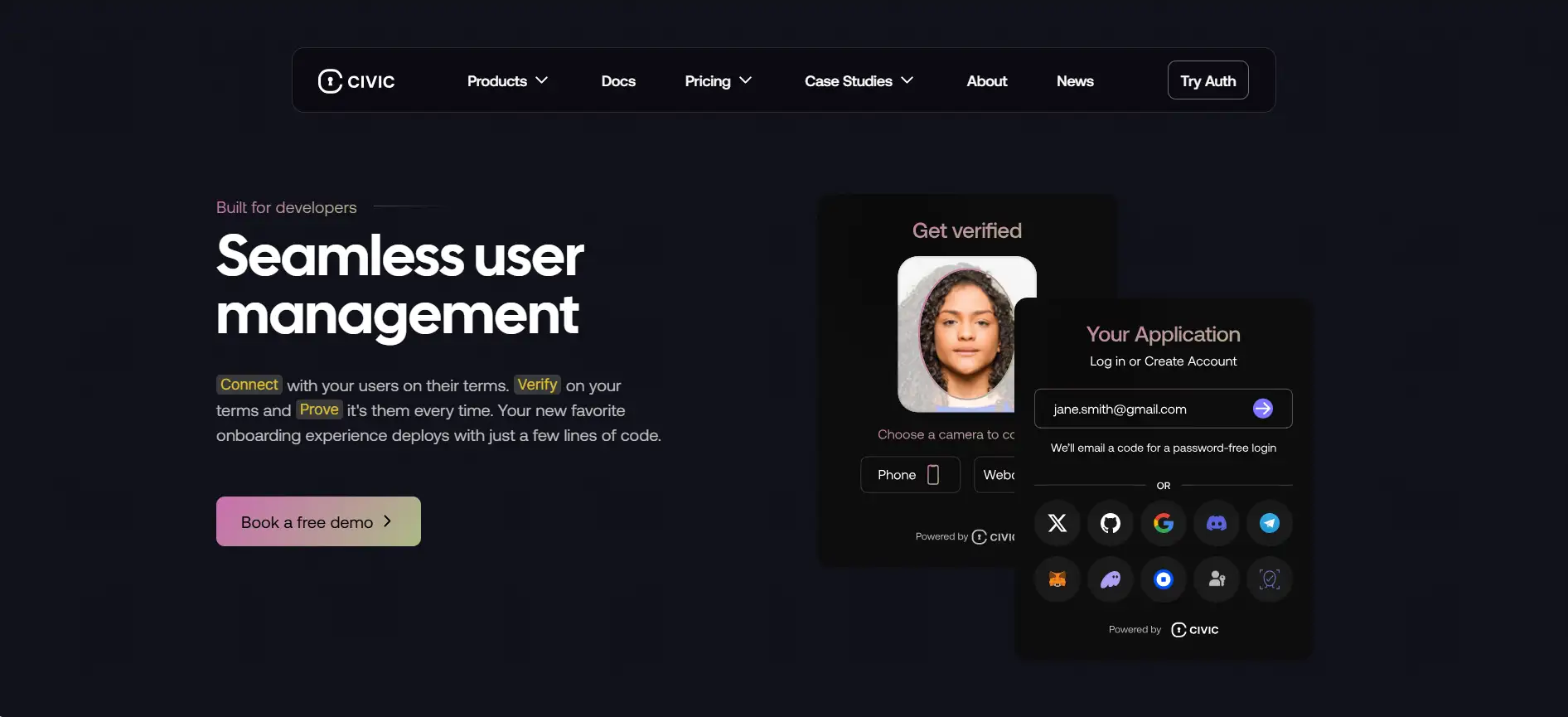 Civic provides a streamlined way for developers and teams to add secure, scalable identity features to their applications: