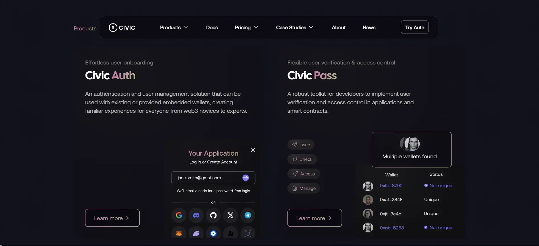 Through its flagship products, Civic Auth and Civic Pass, the platform offers seamless user onboarding, liveness detection, age verification, wallet-based sign-ins, and biometric uniqueness checks—all integrated with just a few lines of code. Civic continues to serve as a robust layer of trust for applications in gaming, DeFi, DAOs, AI, and more, prioritizing privacy, compliance, and scalability in an increasingly decentralized world.