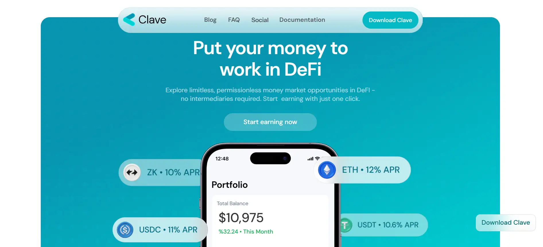 Clave is currently live on the ZKSync Era Mainnet and supports decentralized transfers, swaps, investments, and earning yields directly in-app. The wallet supports over 100 tokens, and users can earn up to 12% APR through integrated DeFi opportunities with just one tap. Its DeFi dashboard allows users to stake tokens or invest in real-world assets and tokenized indexes — all while retaining complete self-custody.