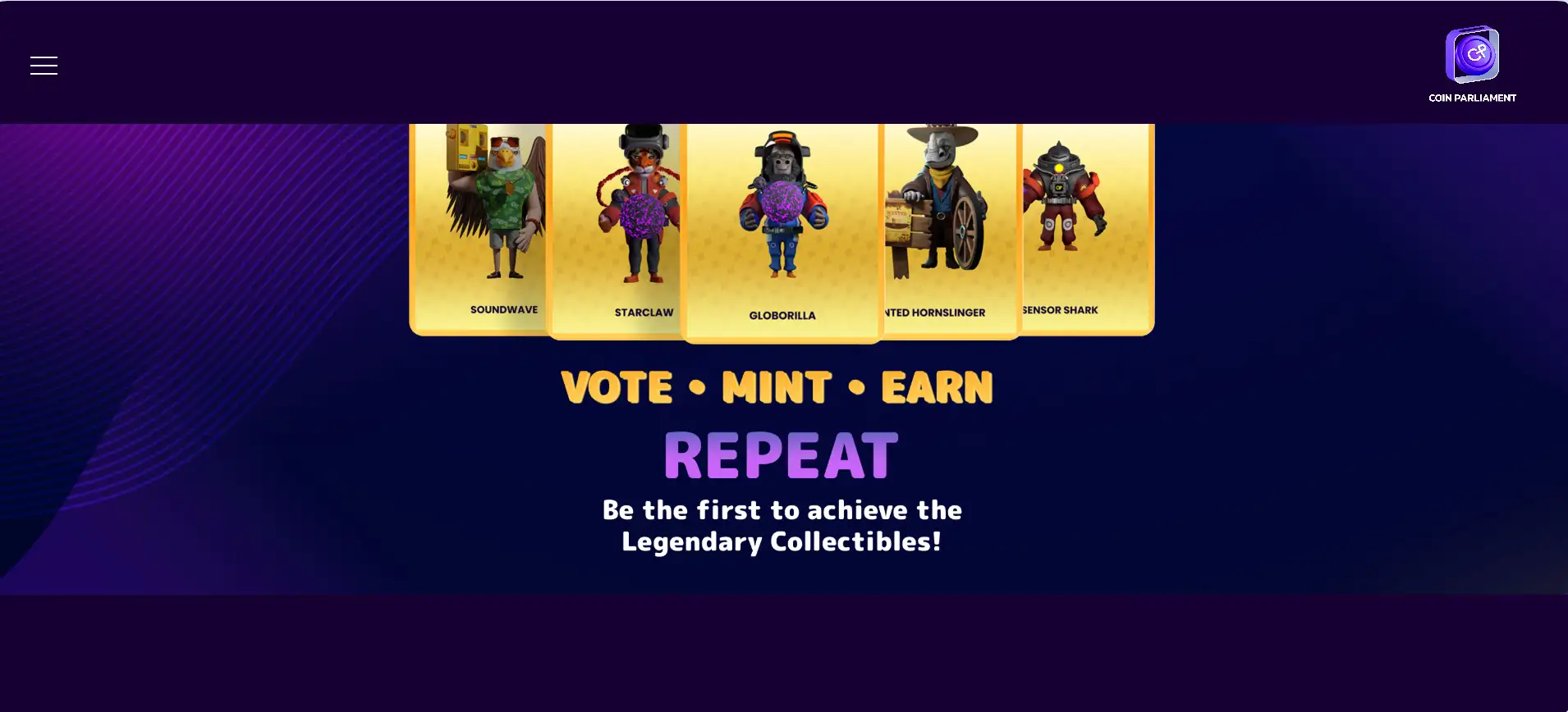 But Coin Parliament isn’t just a voting platform — it's a community-driven collectible universe. Each time users upgrade their account, their voting power grows and they receive digital character cards. These cards, such as Legendary characters like “Starclaw” and “Wanted Hornslinger,” are minted on-chain and can be traded for real value. First-time owners even receive lifetime royalties, adding a layer of passive income for early adopters.