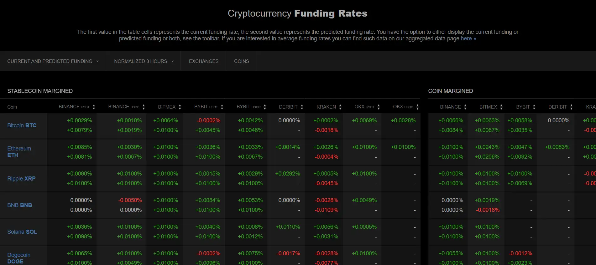 With real-time data feeds and a clean UI, Coinalyze tracks market movements across hundreds of the most traded digital assets, including Bitcoin (BTC), Ethereum (ETH), Solana (SOL), and many altcoins. The platform's unique metrics—such as the OI/VOL24H ratio and predicted funding rate averages—give traders a competitive edge, whether they are hedging positions or hunting for new entries in derivatives markets.