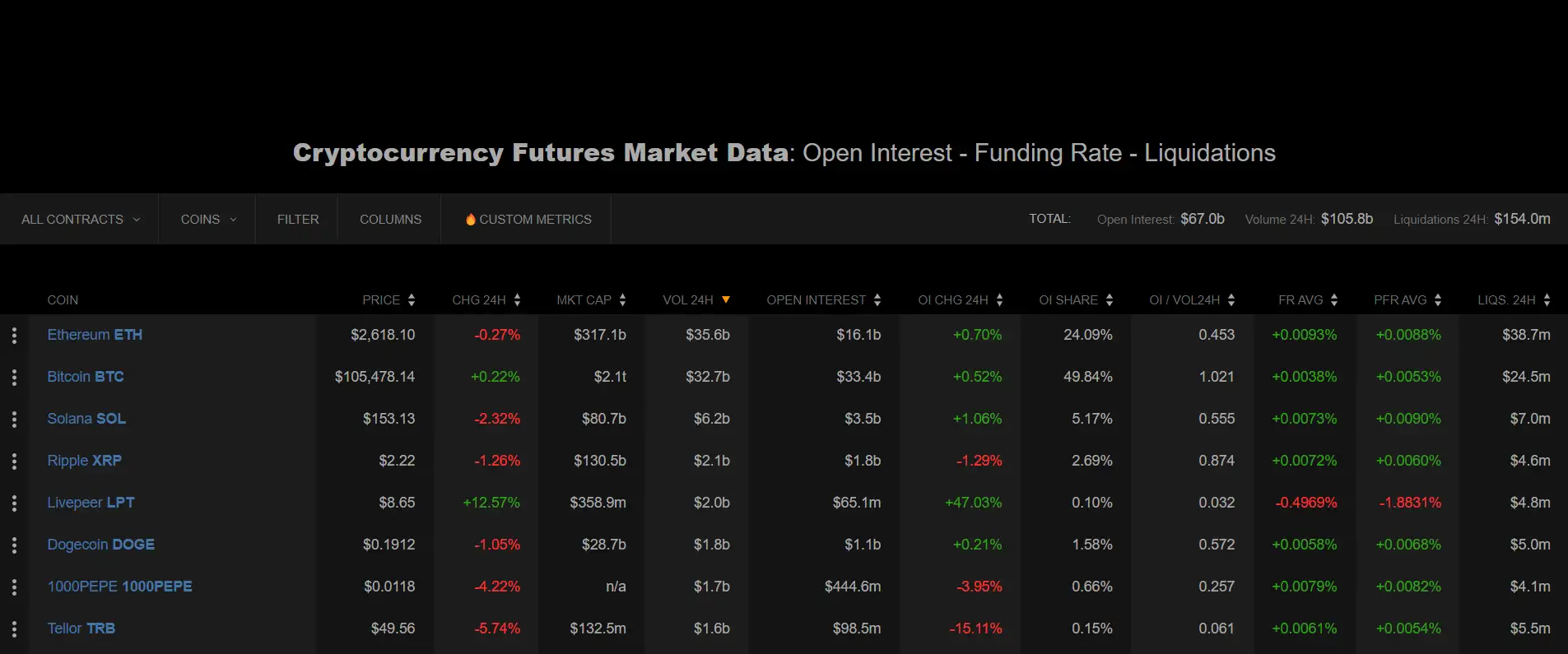 - Step 2: Explore Market Metrics — Begin by reviewing aggregated futures data on the homepage, including Open Interest, Funding Rates, and Liquidations.