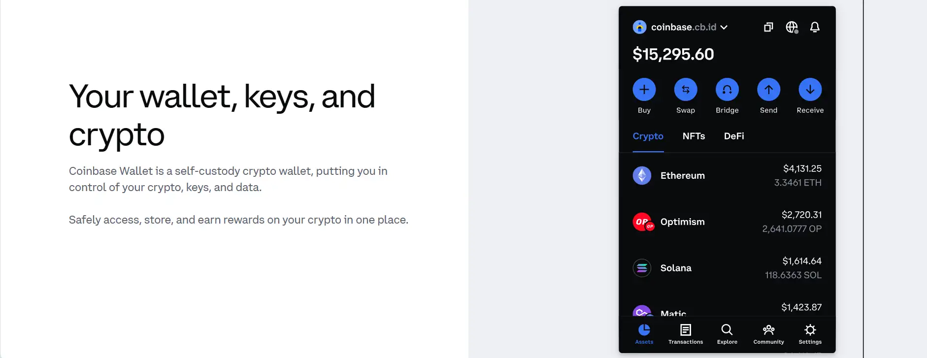 - Self-Custody by Design: Private keys are stored on your device—not by Coinbase. Full control, zero compromises.