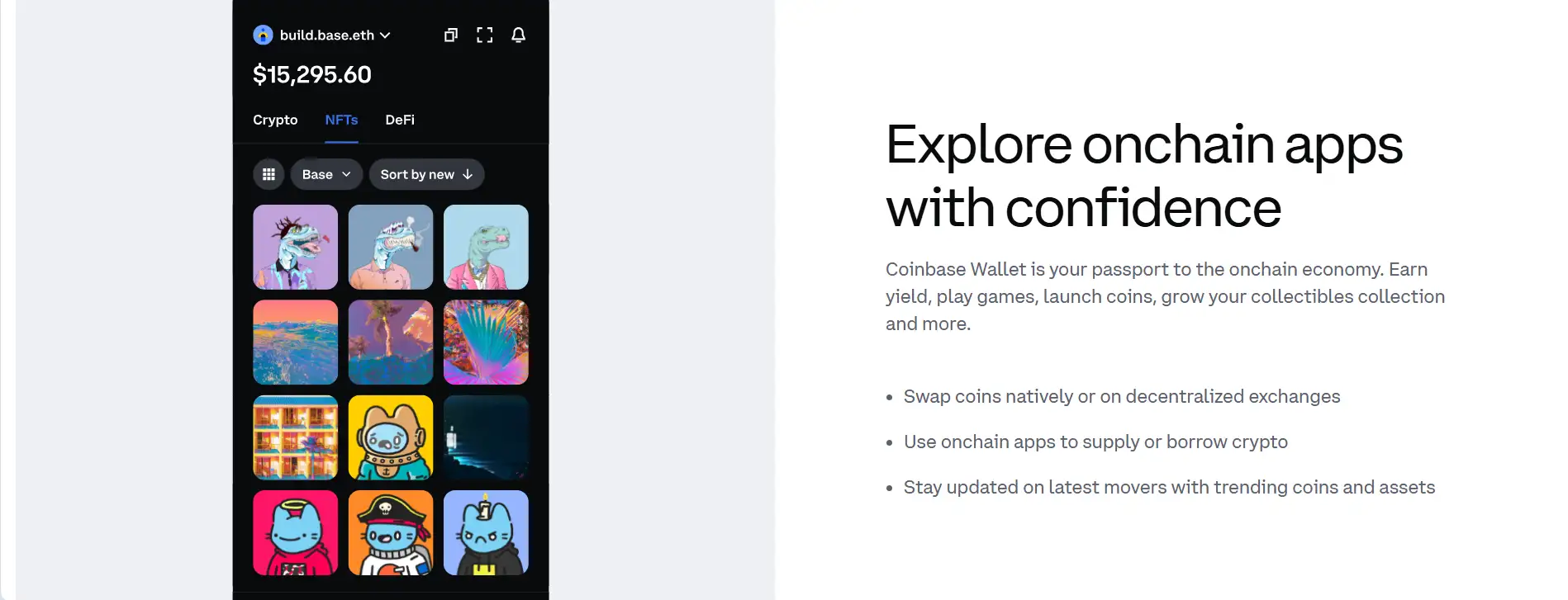 - No Coinbase Account Required: Use the wallet standalone without connecting to a centralized Coinbase exchange account.