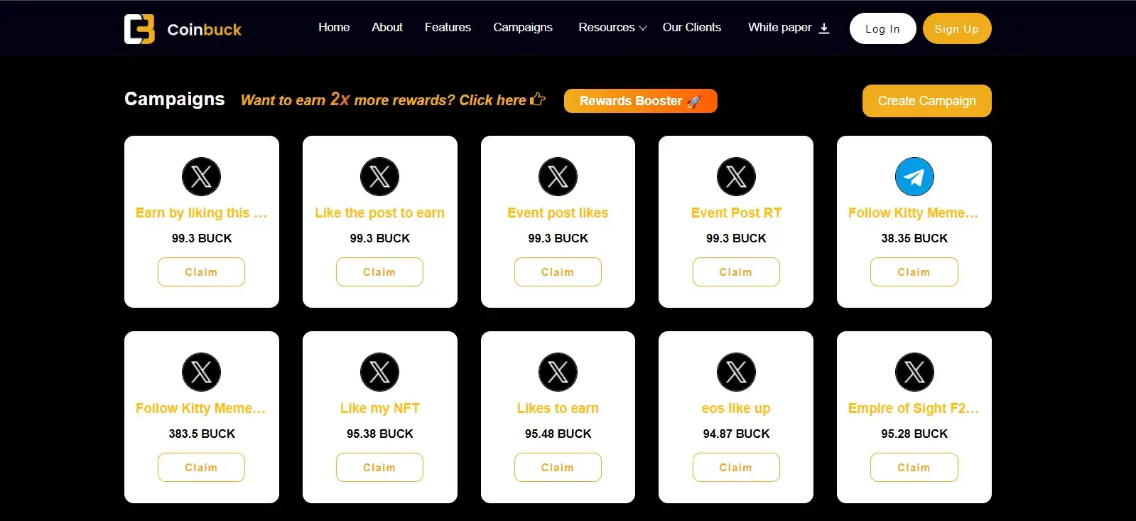- Start Earning $BUCK Tokens: Engage with content on social media by liking, sharing, and creating posts. Each interaction will earn you $BUCK tokens, which will be credited to your CoinBuck wallet.
