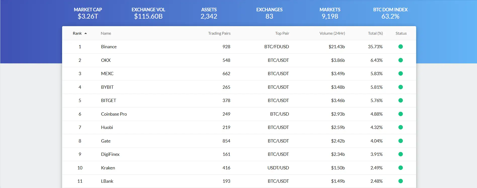 - Real-Time Market Data: Track thousands of crypto assets and over 9,000 markets with second-by-second pricing, volume, and market cap updates.