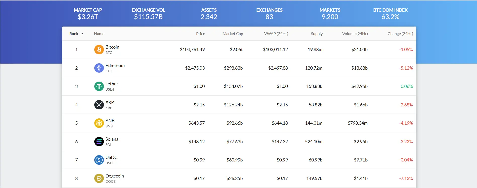 CoinCap makes it easy for anyone to get started with crypto market analysis:
