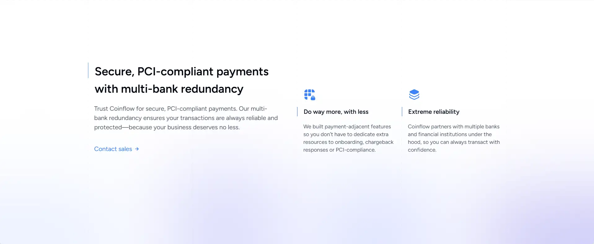 - Secure & Reliable: PCI-compliant, with multi-bank redundancy, Coinflow ensures maximum uptime and protection of sensitive financial data.
