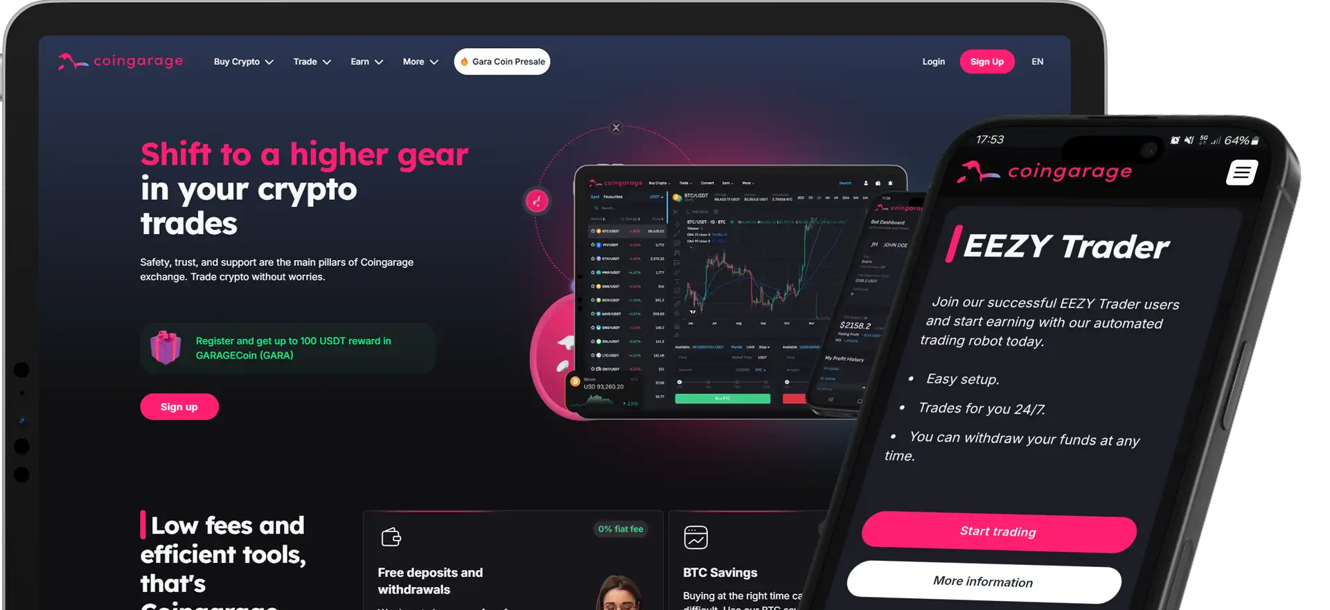 Coingarage is a next-generation European crypto exchange built on the principles of security, efficiency, and user empowerment. At its core lies the $GARA token, a utility asset designed to supercharge user engagement and provide direct value to both novice and experienced traders alike. Coingarage seamlessly combines professional-grade trading tools, automated bots, savings products, and gamified engagement into one unified platform.