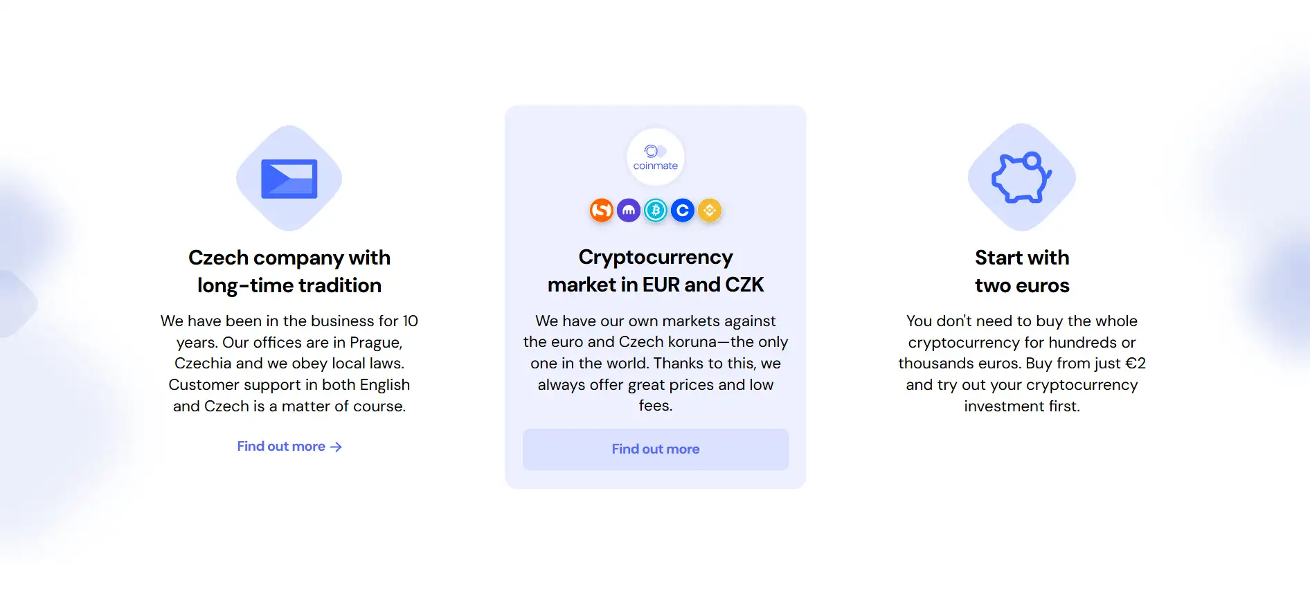 Competitors in this space include Kraken, Bitstamp, and Coinbase. However, Coinmate differentiates itself through its strong regional focus, dual EUR/CZK markets, and unmatched local support for Central European users.