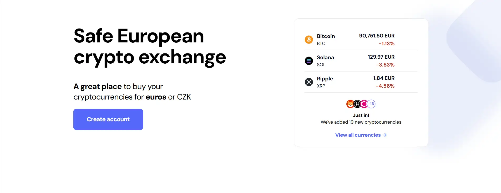- Dual Fiat Support: Trade directly in both Euros and Czech koruna, making it one of the few exchanges offering full CZK market integration.