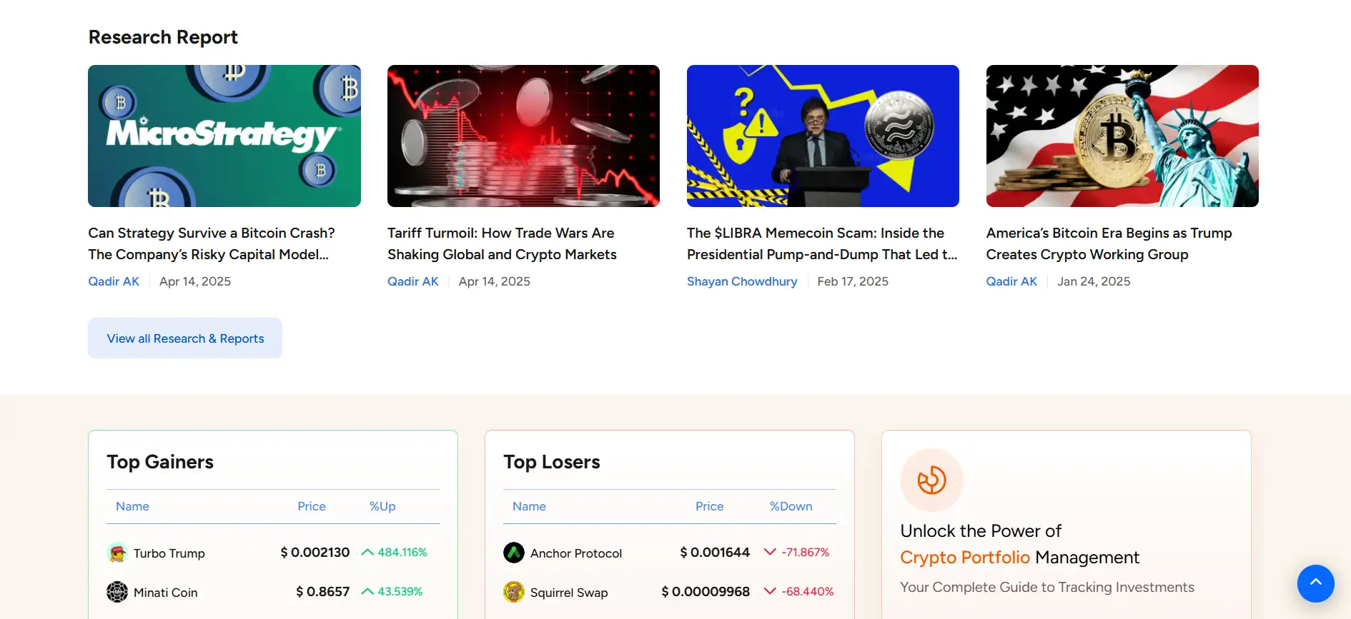 In addition to its news function, Coinpedia operates a wide variety of services. It provides crypto-related product reviews, blockchain event coverage, in-depth research reports, and offers valuable educational tools via the Coinpedia Academy. It empowers users to track their portfolios in real time, stay informed with short-form breaking updates, and engage with the latest market movements across leading tokens like BTC, ETH, XRP, and others.