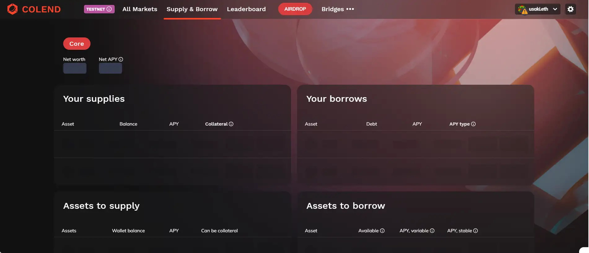 - Connect Your Wallet: Colend supports popular crypto wallets such as MetaMask. Ensure your wallet is funded with supported digital assets.