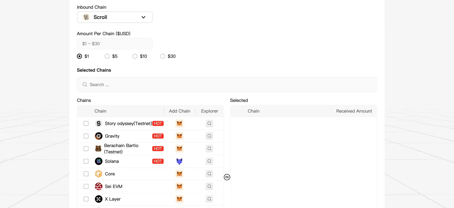 3. Select the Source and Destination Chains: Choose the blockchain you want to transfer assets from and the blockchain you want to transfer them to.