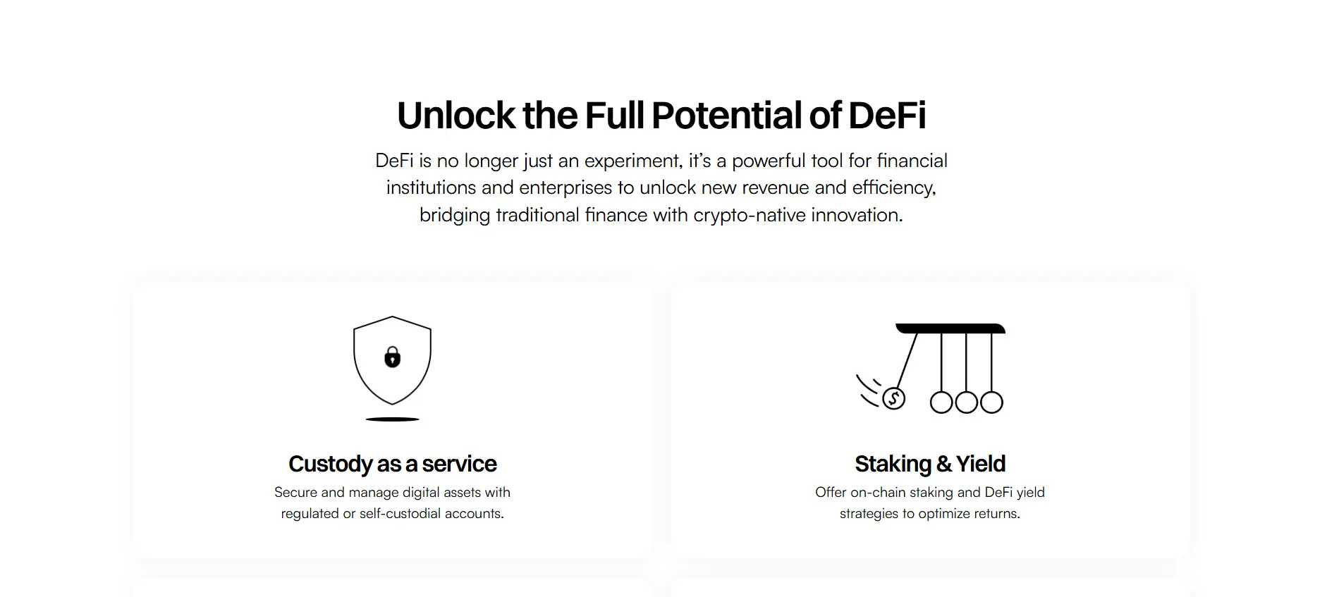 - All-in-One API: Integrate custody, staking, trading, and payments through a single, scalable interface.