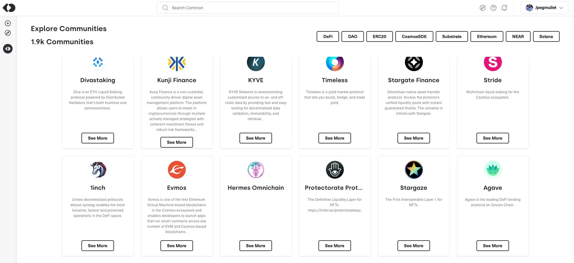 - Multi-Chain Support: The platform supports the creation of communities on various blockchain networks, including Ethereum, Cosmos, and Binance Smart Chain. This multi-chain support ensures that Common is accessible and usable by a wide range of decentralized communities.