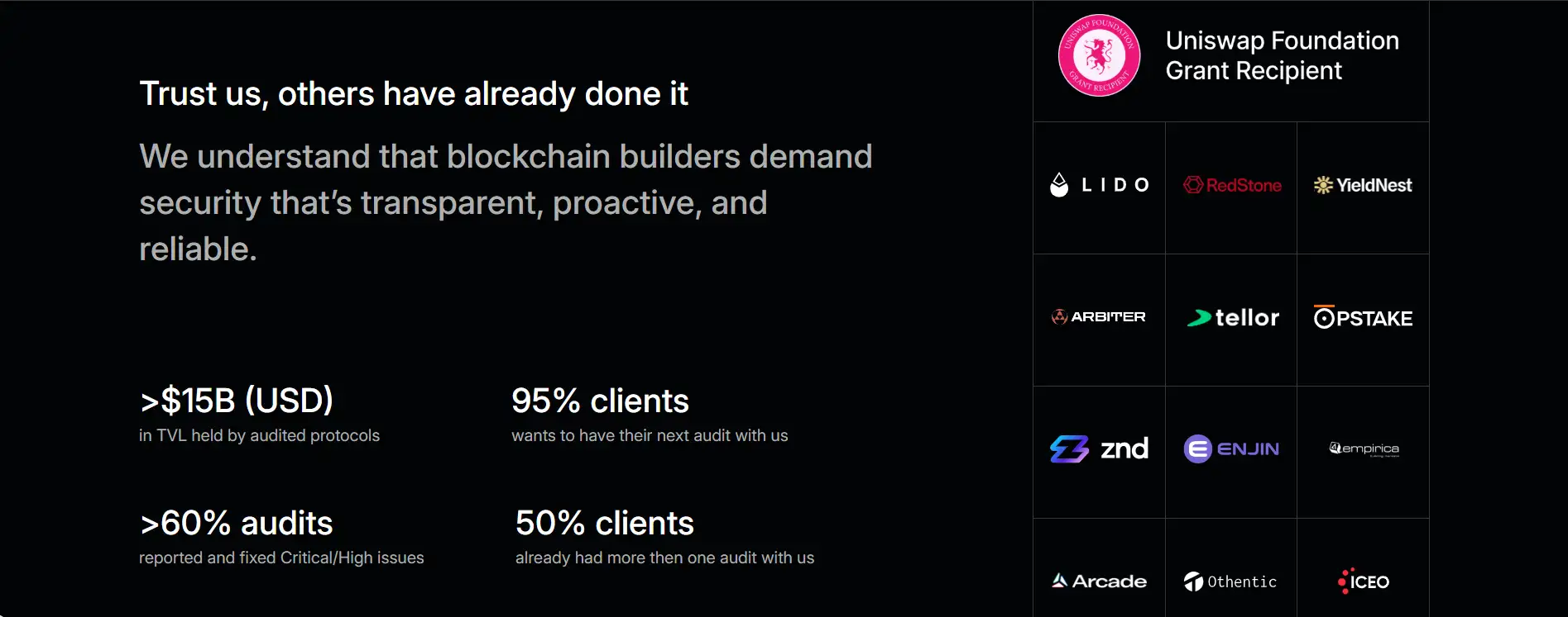 More than 60% of audits uncover and resolve high/critical issues, and over 50% of clients return for follow-ups. The firm is committed to proactive, collaborative auditing that doesn’t just secure code, but helps teams level up their entire security posture. Learnings from real-world vulnerabilities are openly shared via their blog and speaker appearances at ETHGlobal, EthCC, EthereumZurich, and FIL Dev Summit.