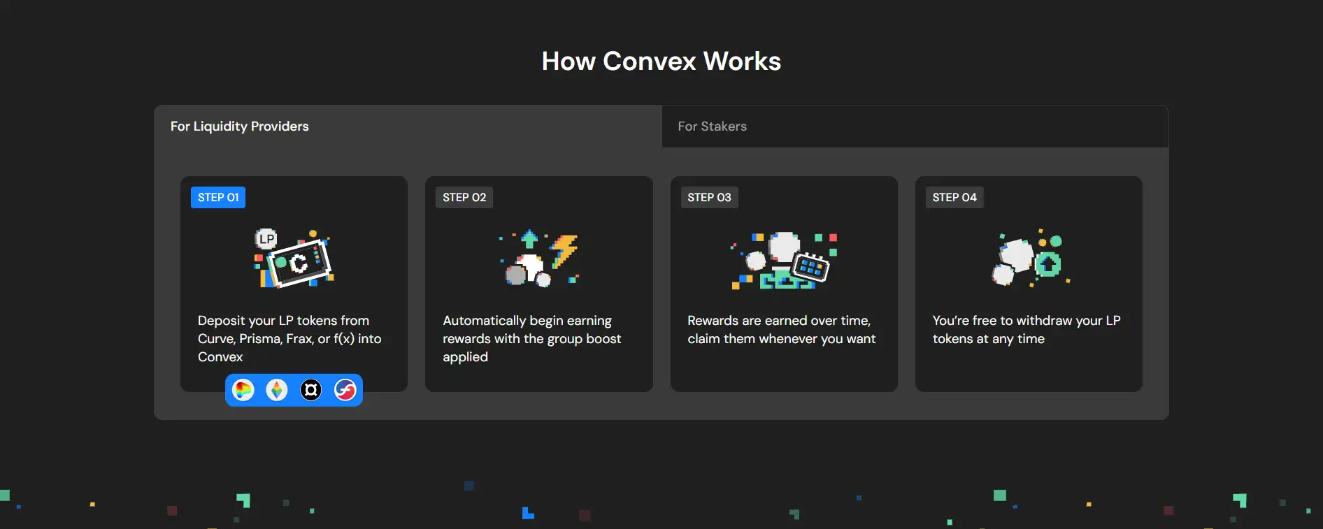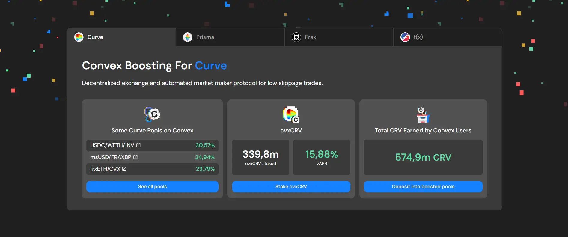 - Decentralized Governance: Holders of Convex’s native token, CVX, participate in platform governance, voting on key decisions and proposals.
