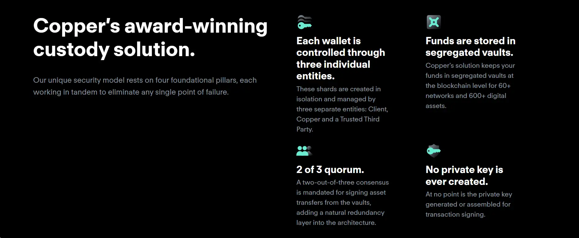 Copper delivers a robust array of security features and institutional tools to meet the growing demands of digital asset managers: