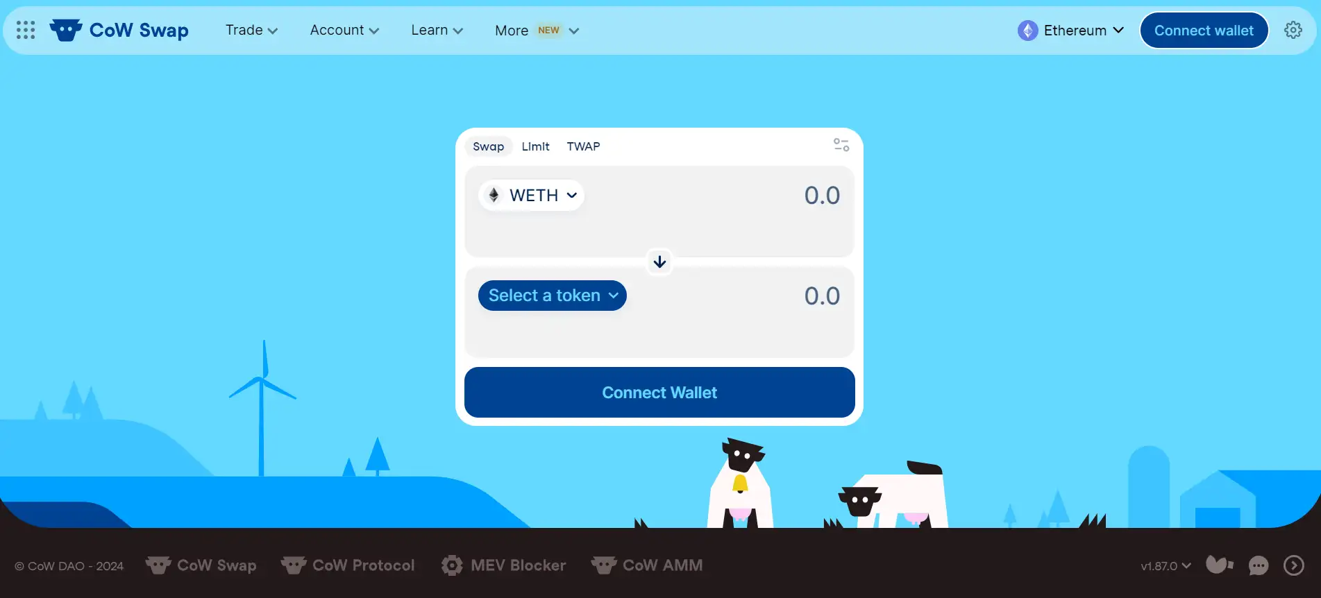 CowSwap, available at swap.cow.fi, is a decentralized exchange (DEX) platform designed to revolutionize the way users trade cryptocurrencies by leveraging cutting-edge technology. Built on top of the CoW Protocol (short for Coincidence of Wants), CowSwap optimizes the trading experience through advanced batching and matching techniques that minimize gas fees, reduce slippage, and prevent front-running. It aims to make decentralized trading more secure, efficient, and user-friendly than ever before.