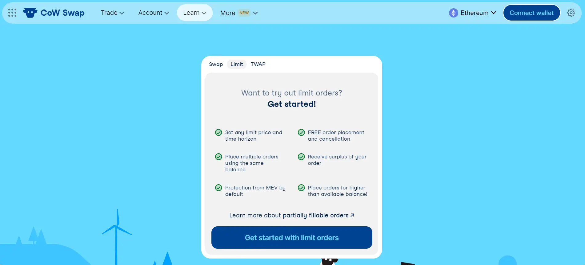 Getting started with CowSwap, available at swap.cow.fi, is simple and straightforward. Follow these steps to begin trading on this innovative decentralized exchange: