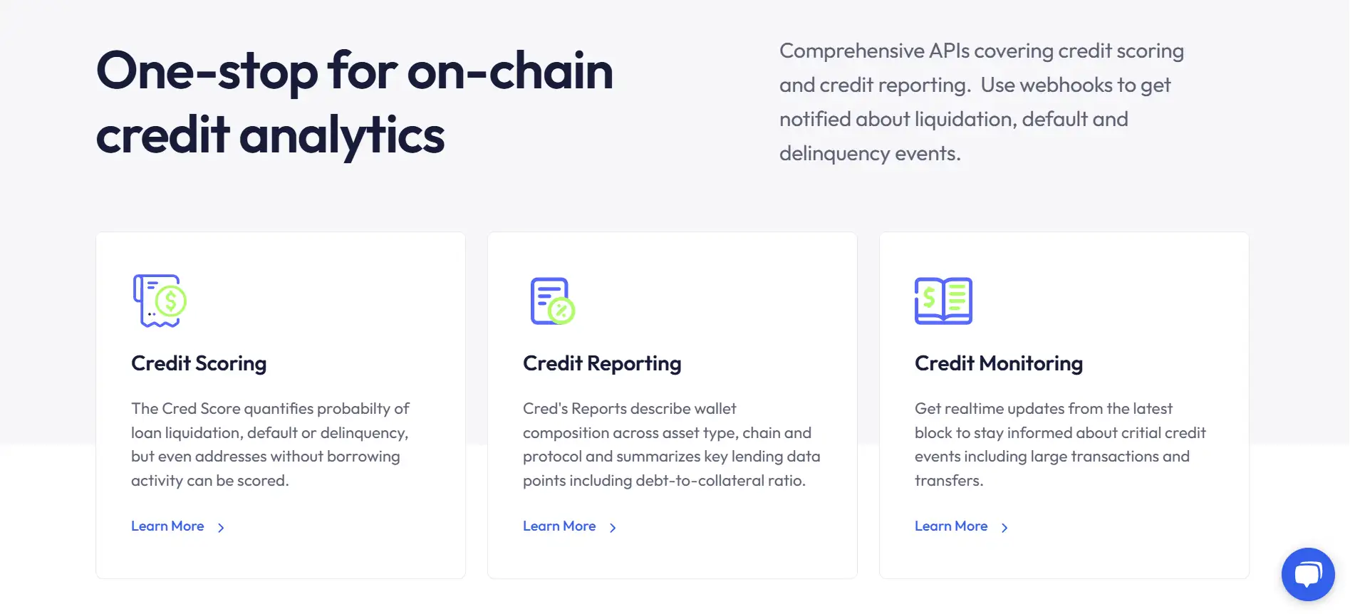 - Multi-Chain Support: Access credit insights across 8 blockchains and over 30 lending protocols including Aave, Compound, and Morpho.