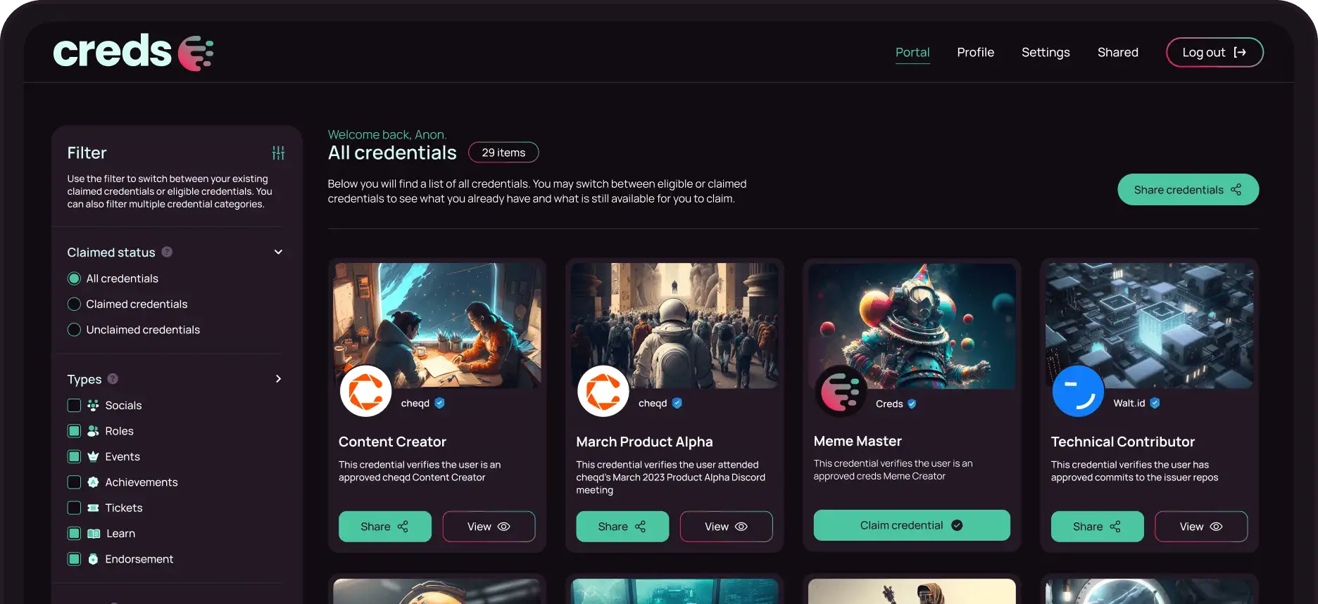 - Integrate with Other Platforms: If you're involved in multiple communities, you can integrate Creds with other platforms to ensure that your reputation is recognized across all your engagements.