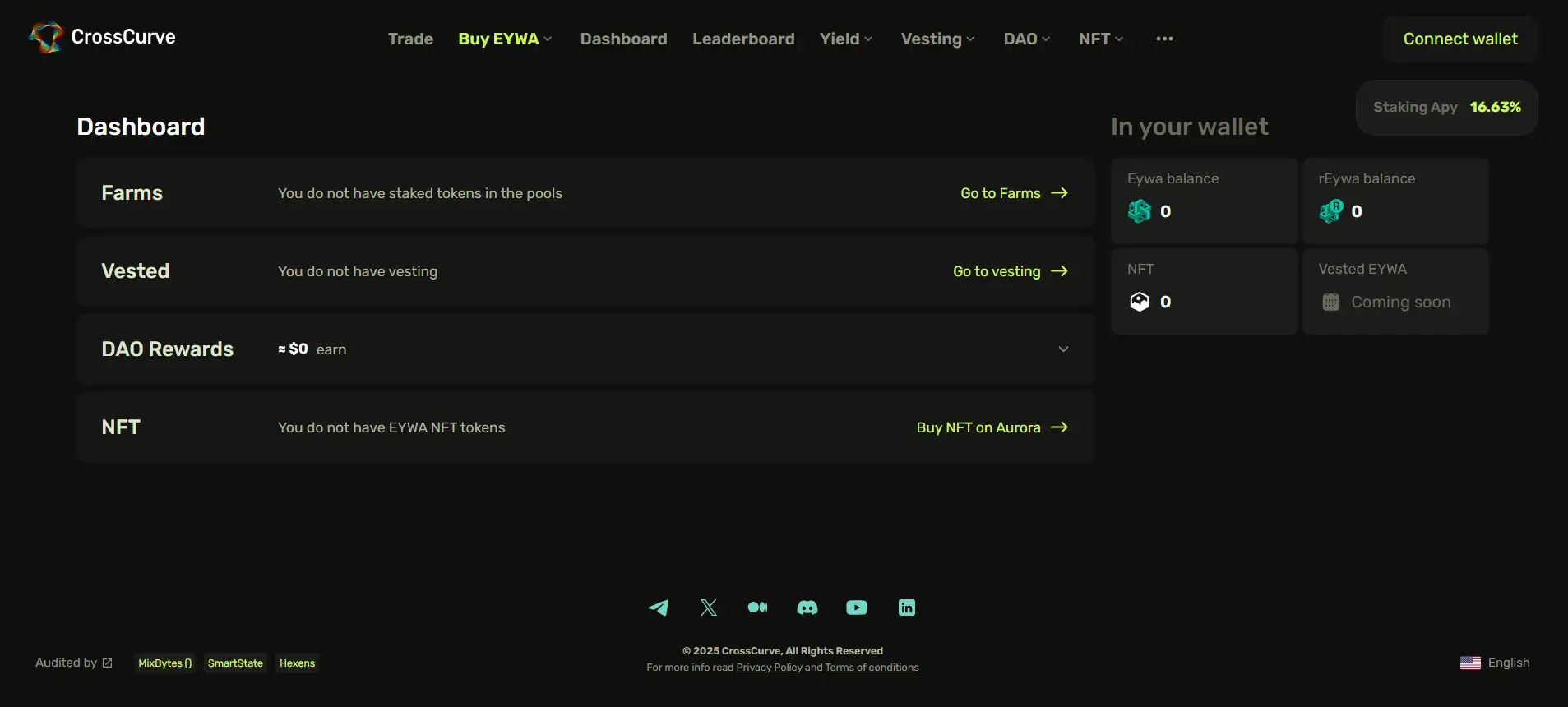 - High-Yield Liquidity Pools: Stake Curve LP tokens (e.g. crvUSD LP, 3pool, 3crypto) into CrossCurve farms and earn multi-layered rewards from Curve, Convex, StakeDAO, and Eywa.